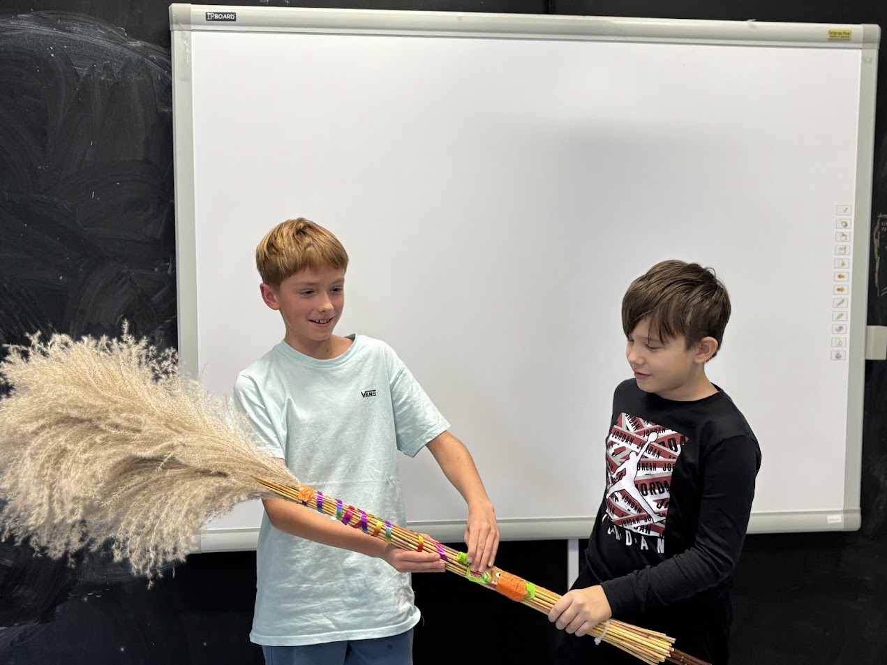 Czwartoklasiści, zainspirowani komiksem Kajko i Kokosz Szkoła latania J. Christy, w ramach kolejnych interdyscyplinarnych warsztatów, projektowali współczesną miotłę Jagi. Wspaniałe przygotowanie i kreatywne pomysły na zbudowanie własnych projektów to połowa sukcesu. Drugą jego część stanowiła świetna współpraca w ramach zespołów i par, rewelacyjne, pełne zaangażowania testy prototypów mioteł oraz ich późniejsza profesjonalna prezentacja.