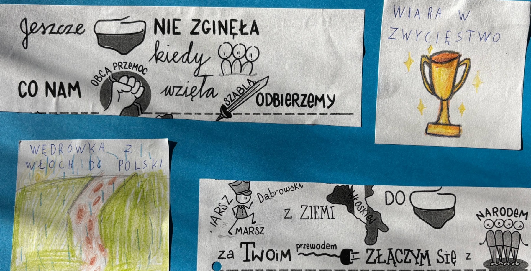 Mazurek Dąbrowskiego – symbol narodowy oraz pieśń o bohaterach, niezłomności i nadziei. Wspólnie z z uczniami klasy szóstej podjęliśmy się zadania analizy tekstu Pieśni Legionów Polskich we Włoszech – wczuwając się w klimat czasów Józefa Wybickiego, chłonąc atmosferę pierwszego wykonania pieśni w Reggio nell’ Emilia, pochylając się nas tym, co konstytuowało naszą tożsamość narodową wtedy a co dzisiaj. Dyskusje oraz twórcza praca w parach dopełniły dzieła. Wierzę, że rośnie nam kolejne pokolenie młodych patriotów. Brawo 6k!