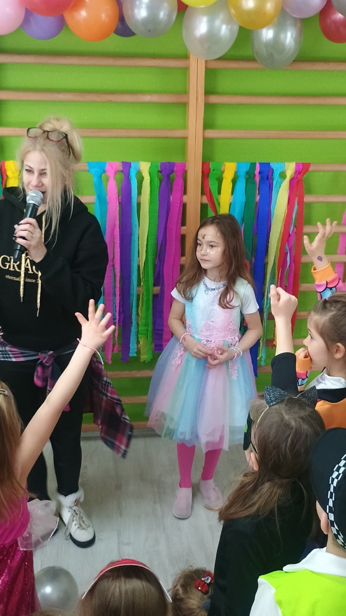 Bal karnawałowy w naszej szkole, to kolorowa, radosna impreza pełna tańców, zabaw i konkursów przy skocznej muzyce, gdzie dzieci w bajkowych strojach zamieniają salę w magiczne krainy, ciesząc się wspólną zabawą, słodkim poczęstunkiem i pamiątkowymi zdjęciami, a wszystko to w atmosferze pełnej uśmiechu i fantastycznych przeżyć.