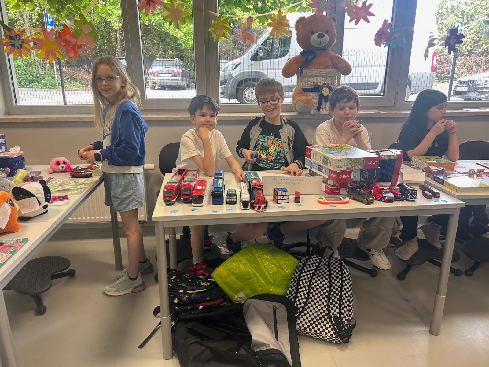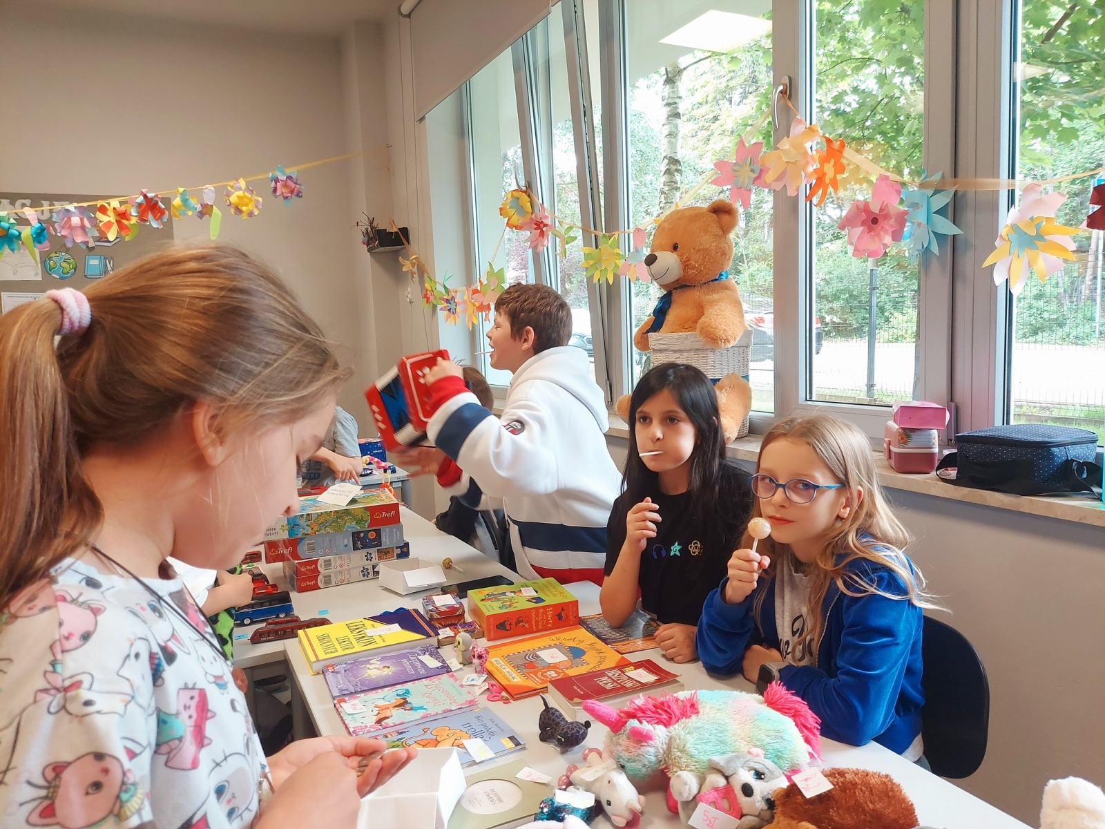 Dzień Dziecka to wyjątkowa okazja, która w każdej szkole jest obchodzona w sposób szczególny, pełen radości i atrakcji. W tym roku przygotowano mnóstwo wrażeń, które z pewnością na długo pozostaną w pamięci uczniów. Każda klasa miała zorganizowane różnorodne stacje z aktywnościami. Można było spróbować swoich sił w sportowych zmaganiach. Młodsze klasy mogły skorzystać z dmuchanej zjeżdżalni a nie zabrakło również corocznej wyprzedaży garażowej, gdzie można było zakupić zabawkę której ktoś już nie używa albo się wymienić. Na koniec nie zabrakło słodkiego deseru w postaci lodów i uwielbianego przez dzieciaki popcornu.