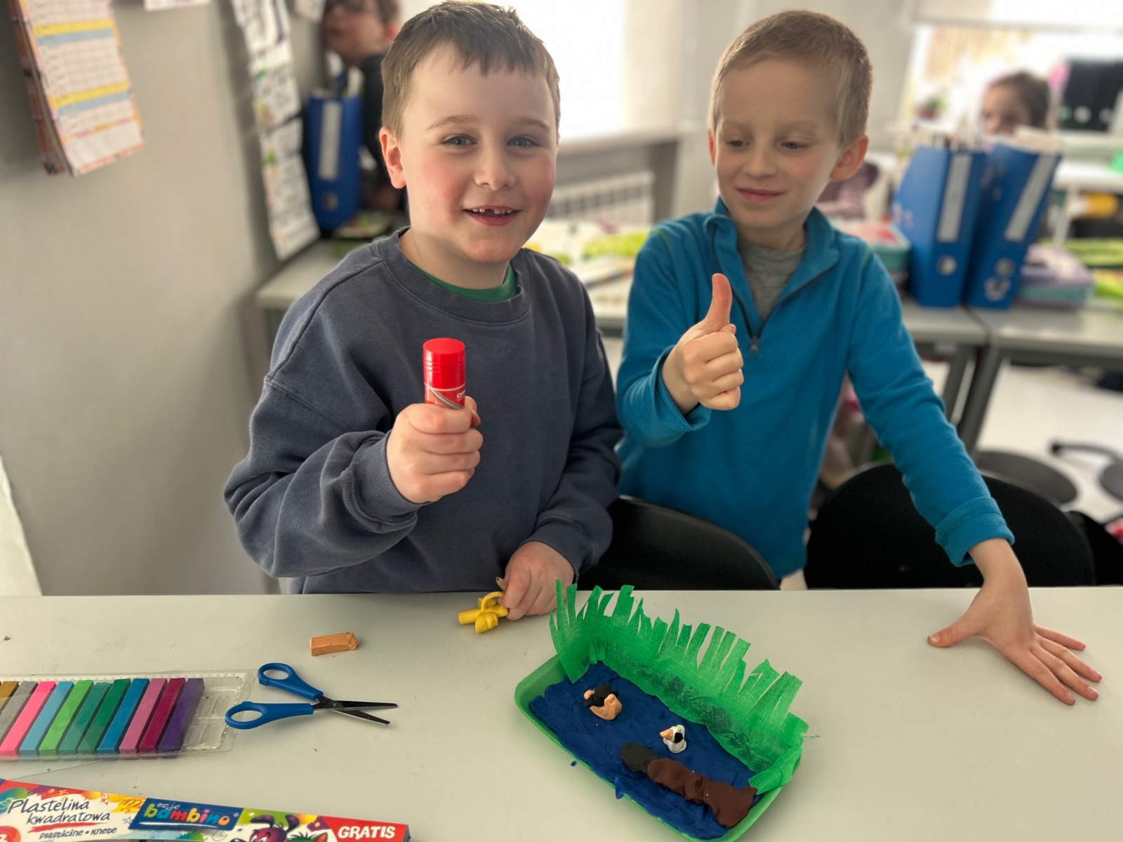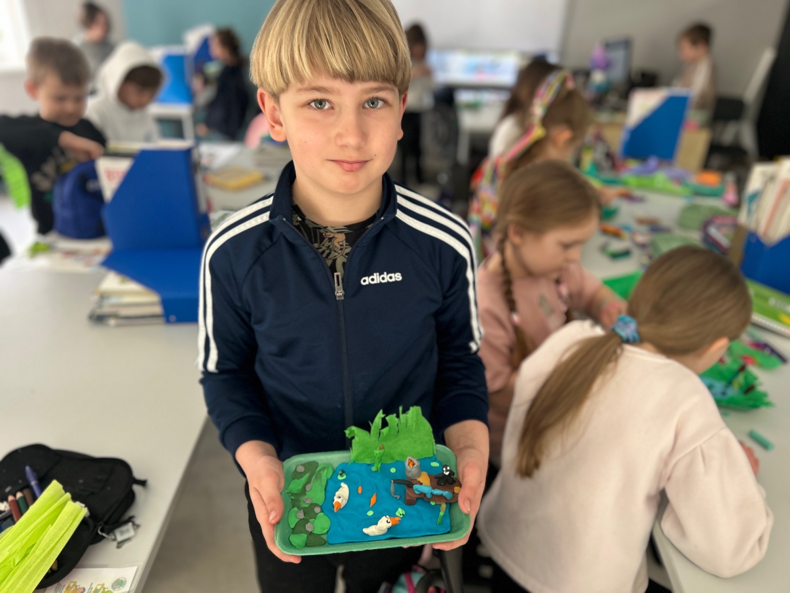 Uczniowie klasy 1A obserwują budzącą się przyrodę i poznają elementy ekosystemu lądowego. Dowiedzieli się już, jak wyglądają stawy i pola, a następnie wykonali własne, kreatywne modele stawów, utrwalając zdobytą wiedzę w praktyce.