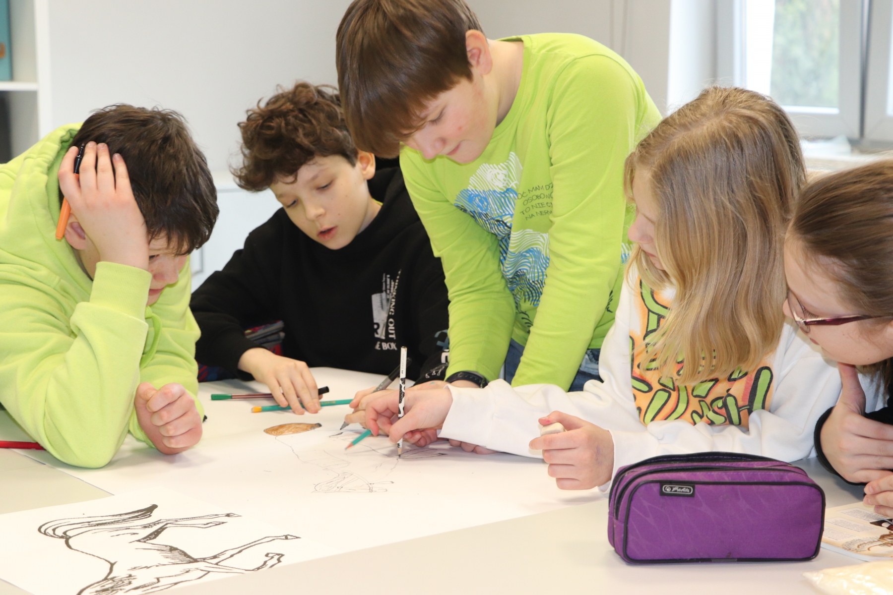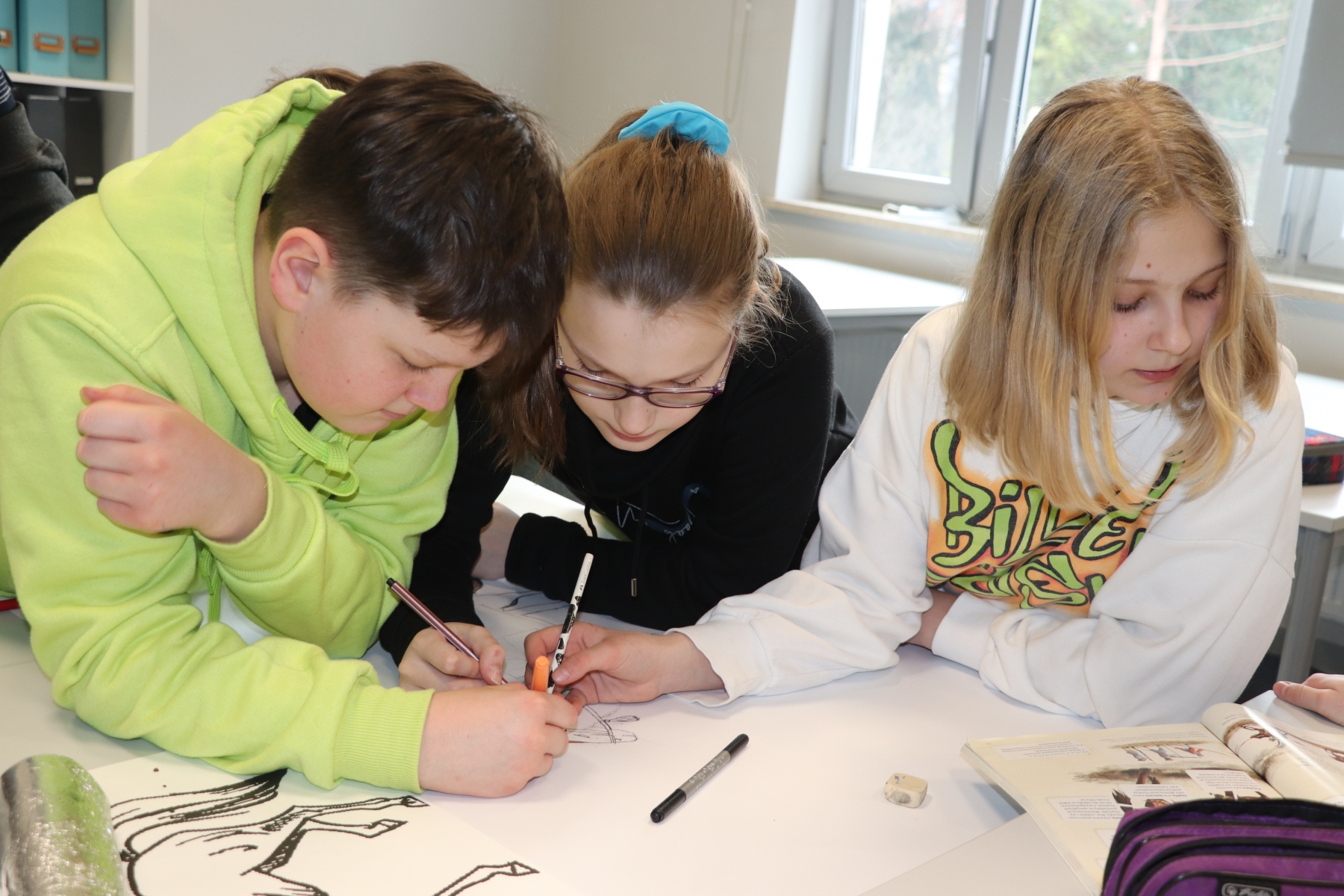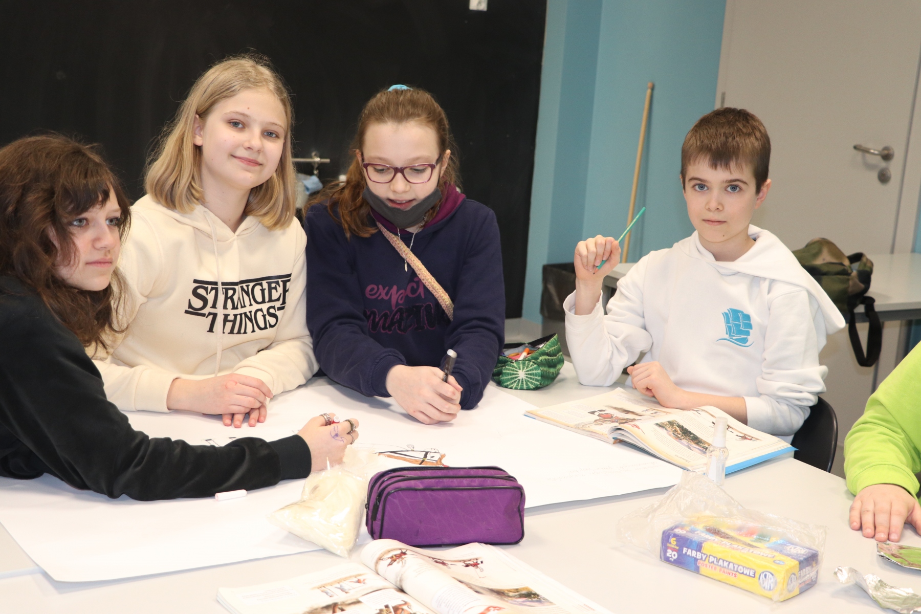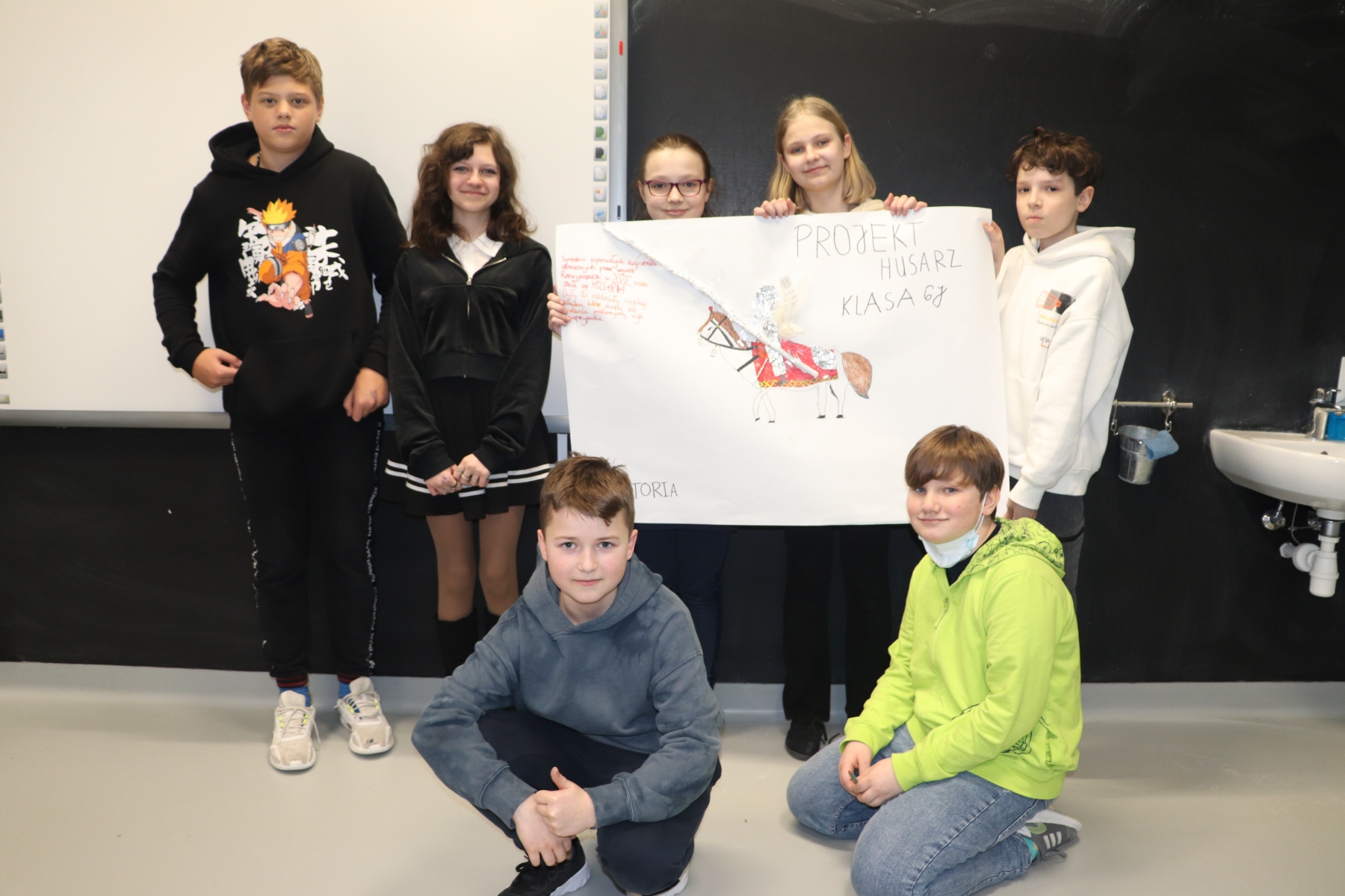 Klasa 6j na lekcji historii wykonała projekt „Husaria”. Przedmiotem pracy zespołowej byli skrzydlaci uzbrojeni jeźdźcy, odziani w zwierzęce skóry, siejący spustoszenie w szeregach wroga, zwyciężający kluczowe bitwy oraz będący elitą wojska polskiego w XVI i XVII wieku.