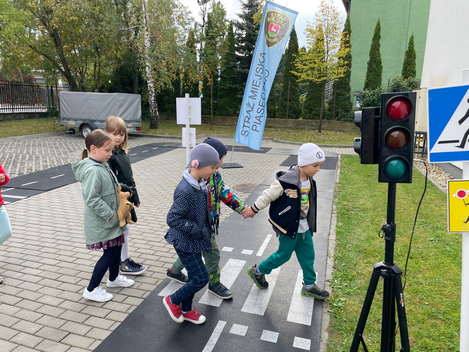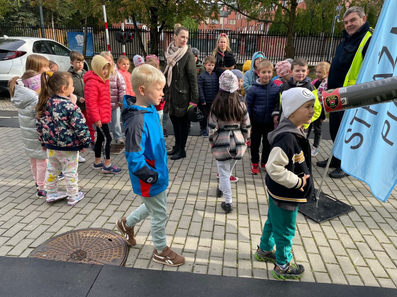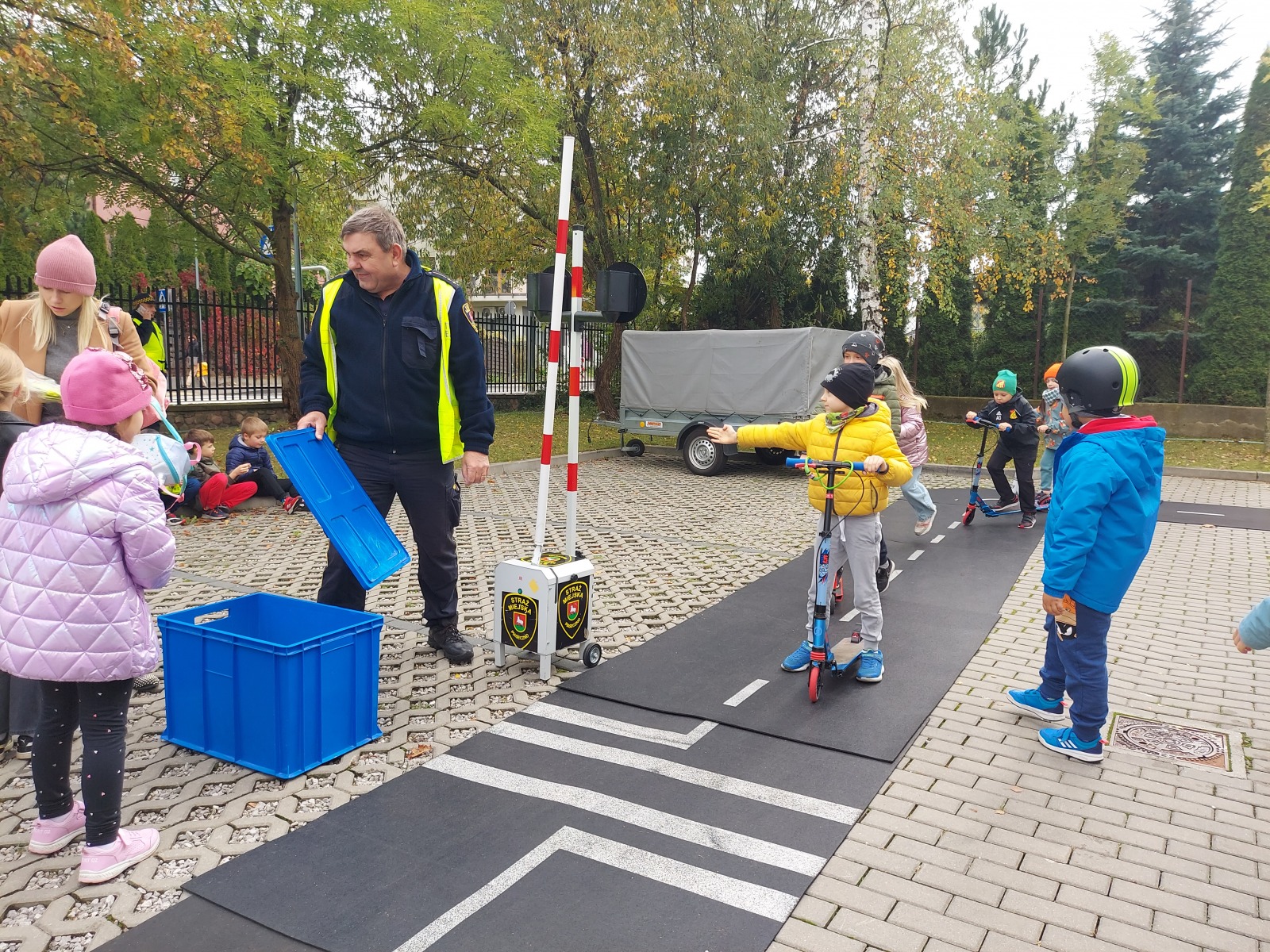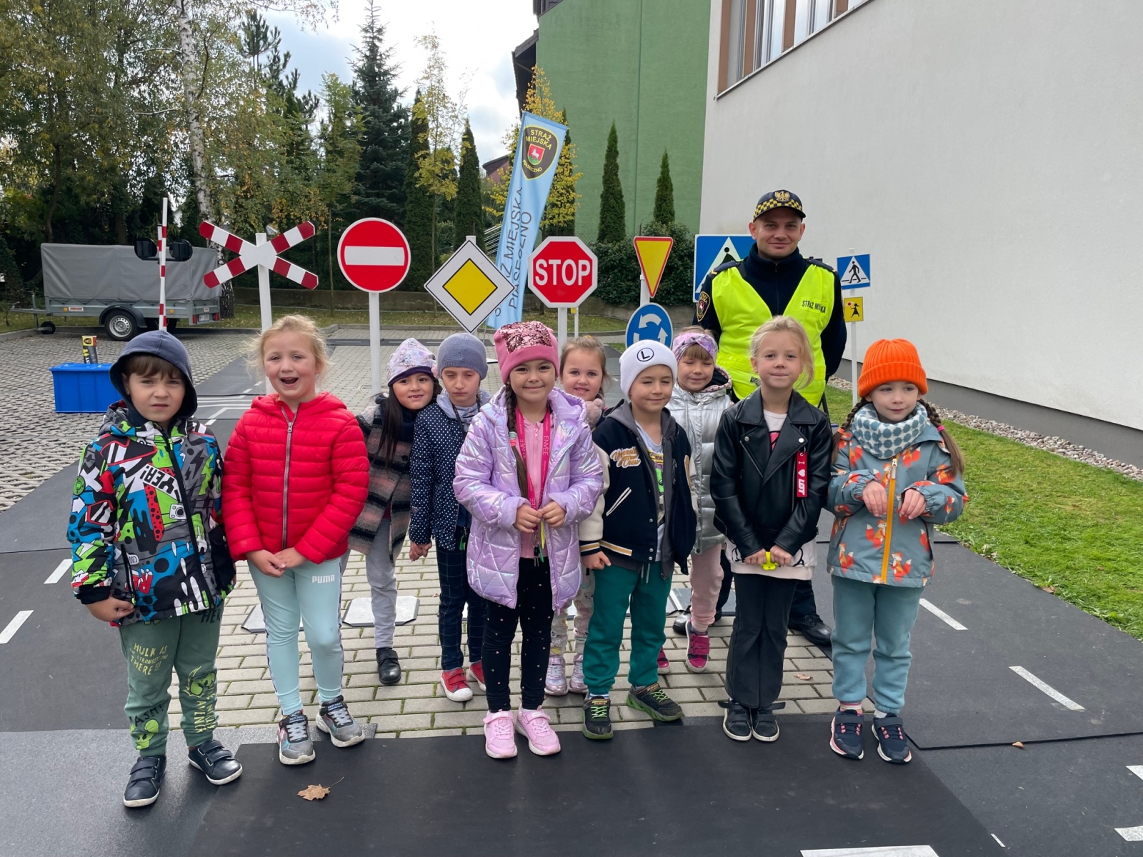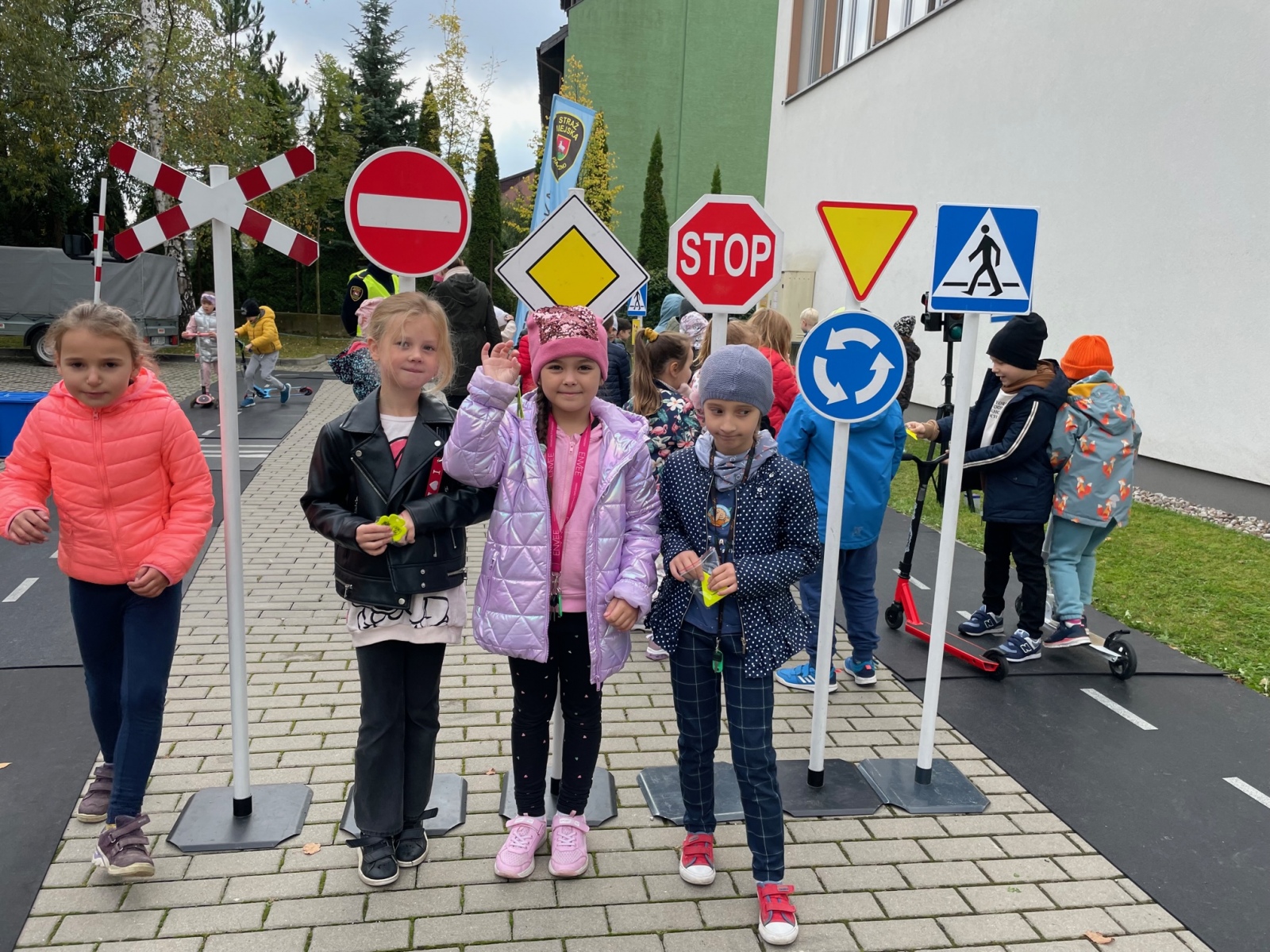Gościliśmy w szkole straż miejską. Panowie szczegółowo omówili z dziećmi zasady poruszania się na drodze. Uczniowie mogli przejechać się na hulajnodze z zastosowaniem poznanych zasad. Wszyscy doskonali utrwalili sobie kiedy można przejść przez jezdnie i jakich znaków przestrzegać?
