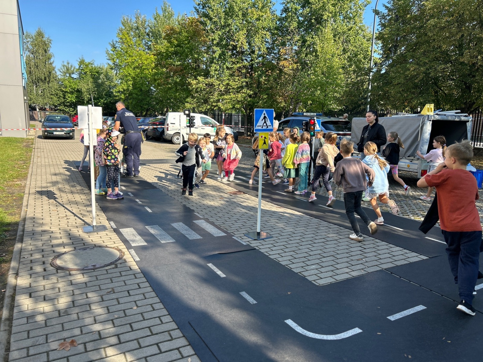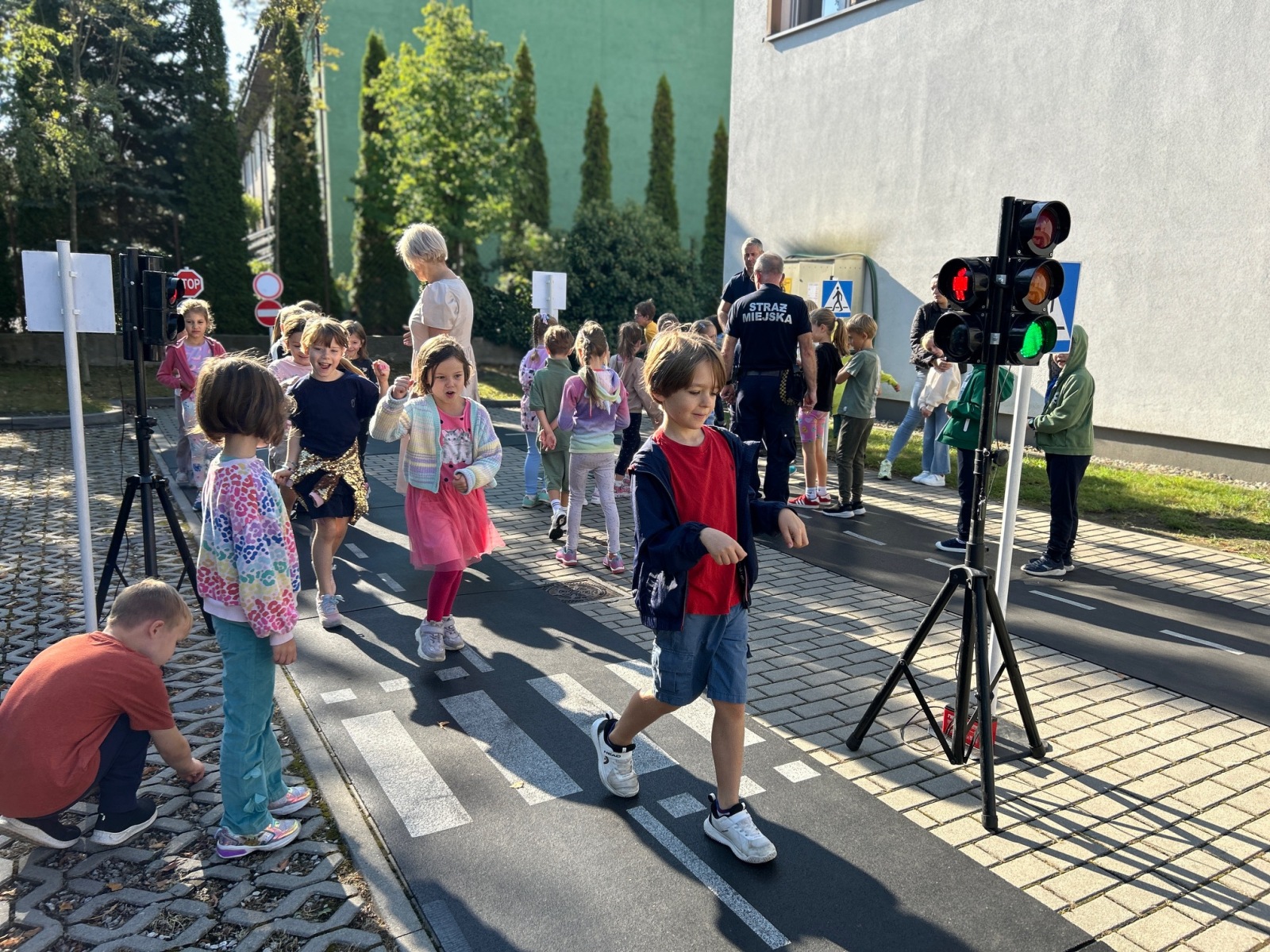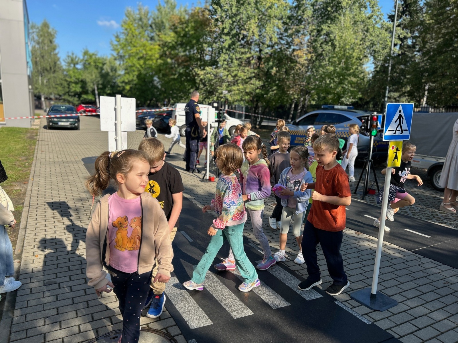 Uczniowie klas 1–3 mieli dziś wyjątkową okazję uczestniczyć w praktycznych zajęciach dotyczących zasad ruchu drogowego. Spotkanie z funkcjonariuszami Straży Miejskiej w Miasteczku Ruchu Drogowego pozwoliło dzieciom lepiej zrozumieć, jak bezpiecznie poruszać się po drogach jako piesi i samochody.