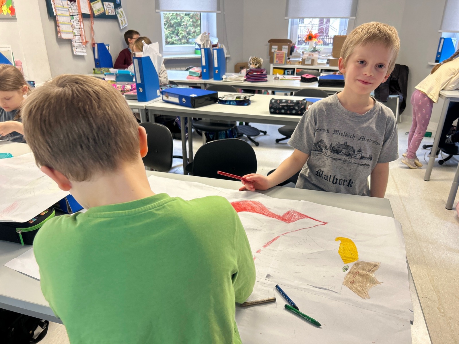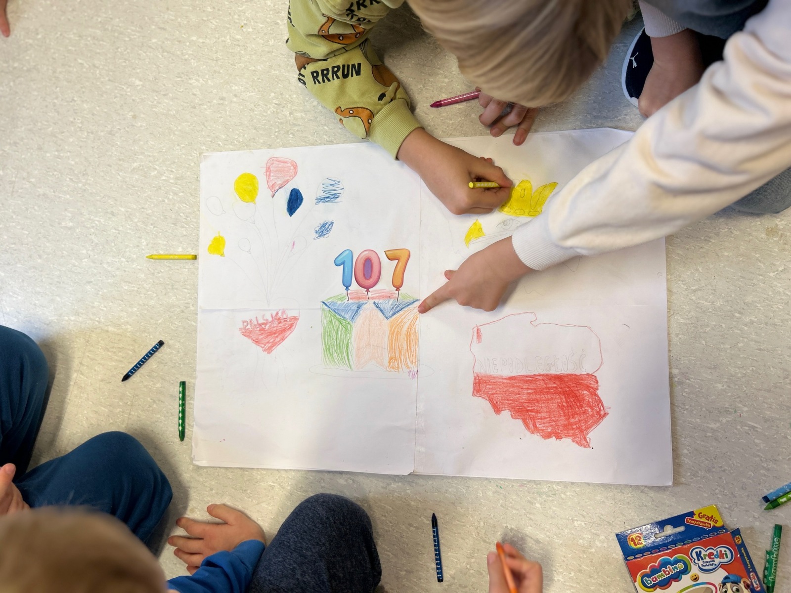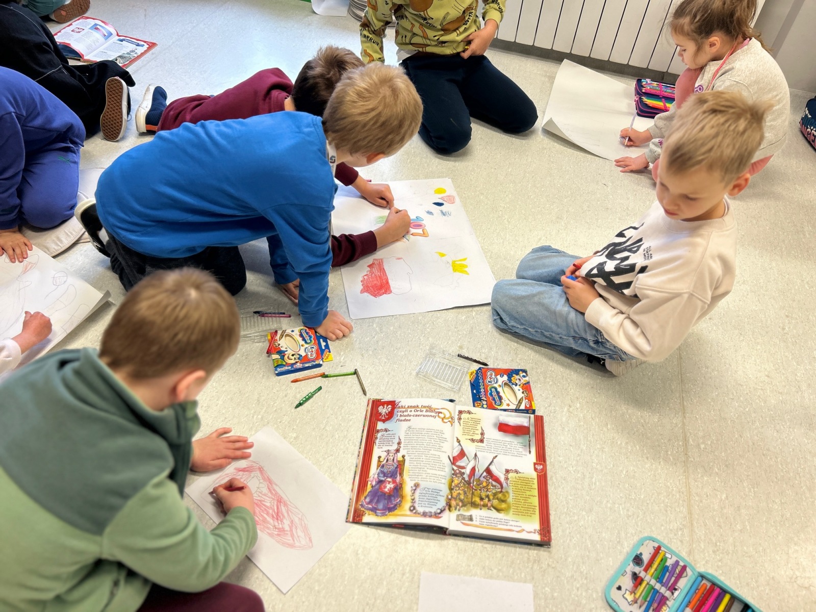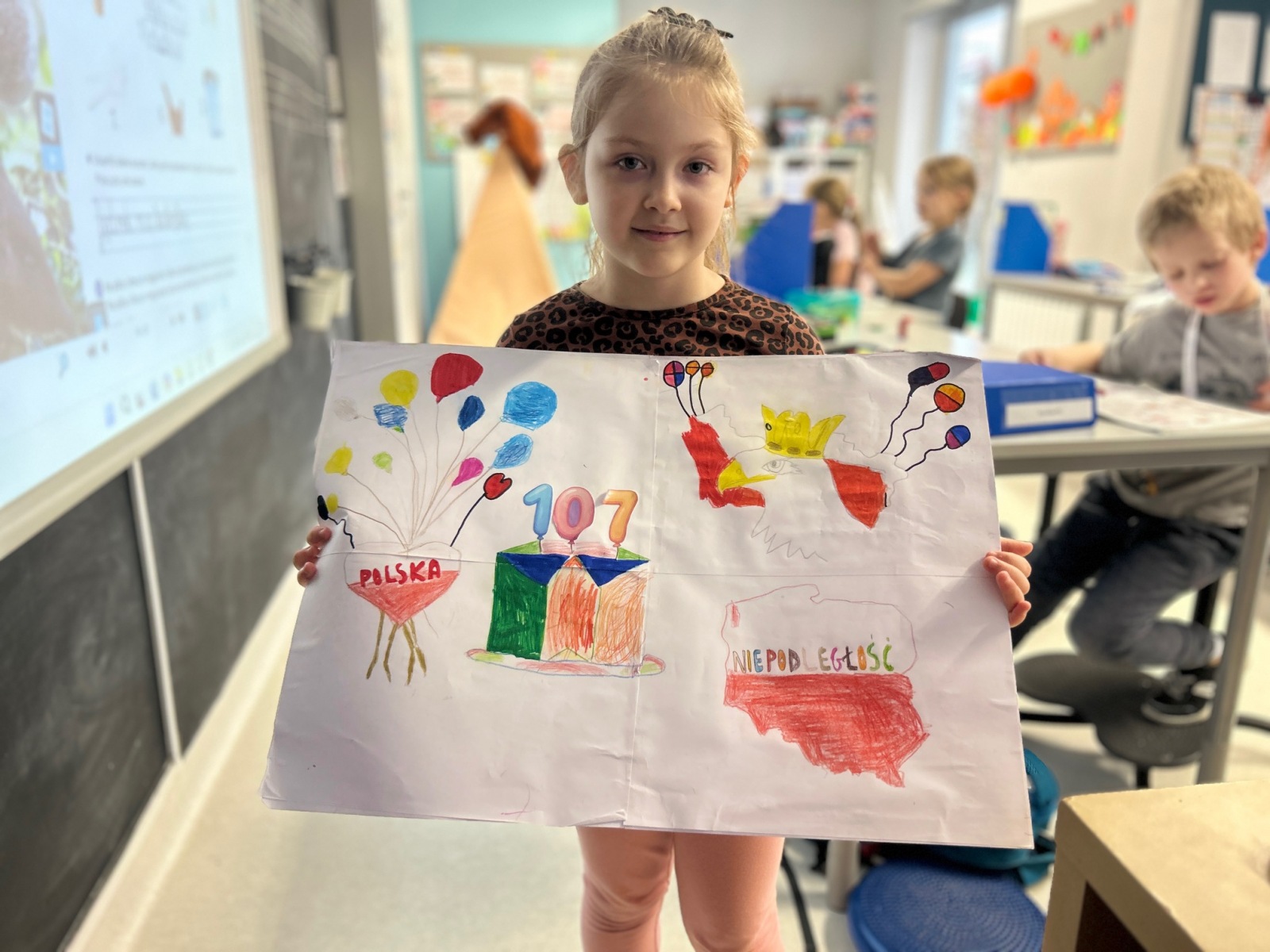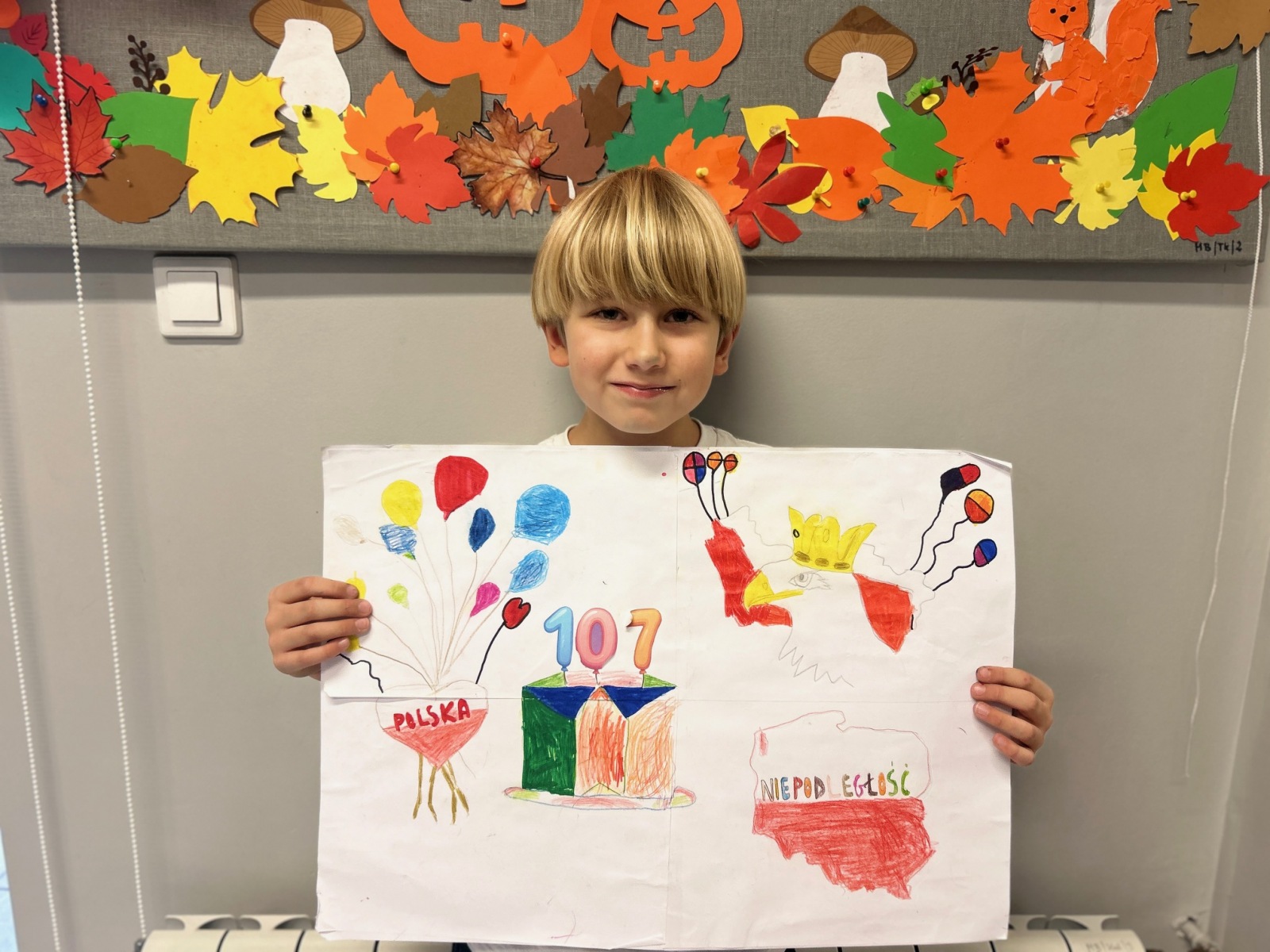 Uczniowie klasy 1A zakończyli w wyjątkowy sposób. Podczas zajęć świętowali 107. rocznicę odzyskania Niepodległości, poznając historię Polski, jej symbole narodowe oraz charakterystyczne znaki największych miast. Dzieci uczyły się poprzez rozmowy, zabawy i prace plastyczne. Wspólnie przygotowały lapbook, w którym zebrały najważniejsze informacje i ilustracje związane z ojczyzną. Dzięki temu mogły utrwalić wiedzę w twórczy, kolorowy i praktyczny sposób.