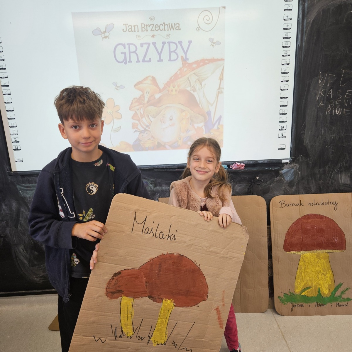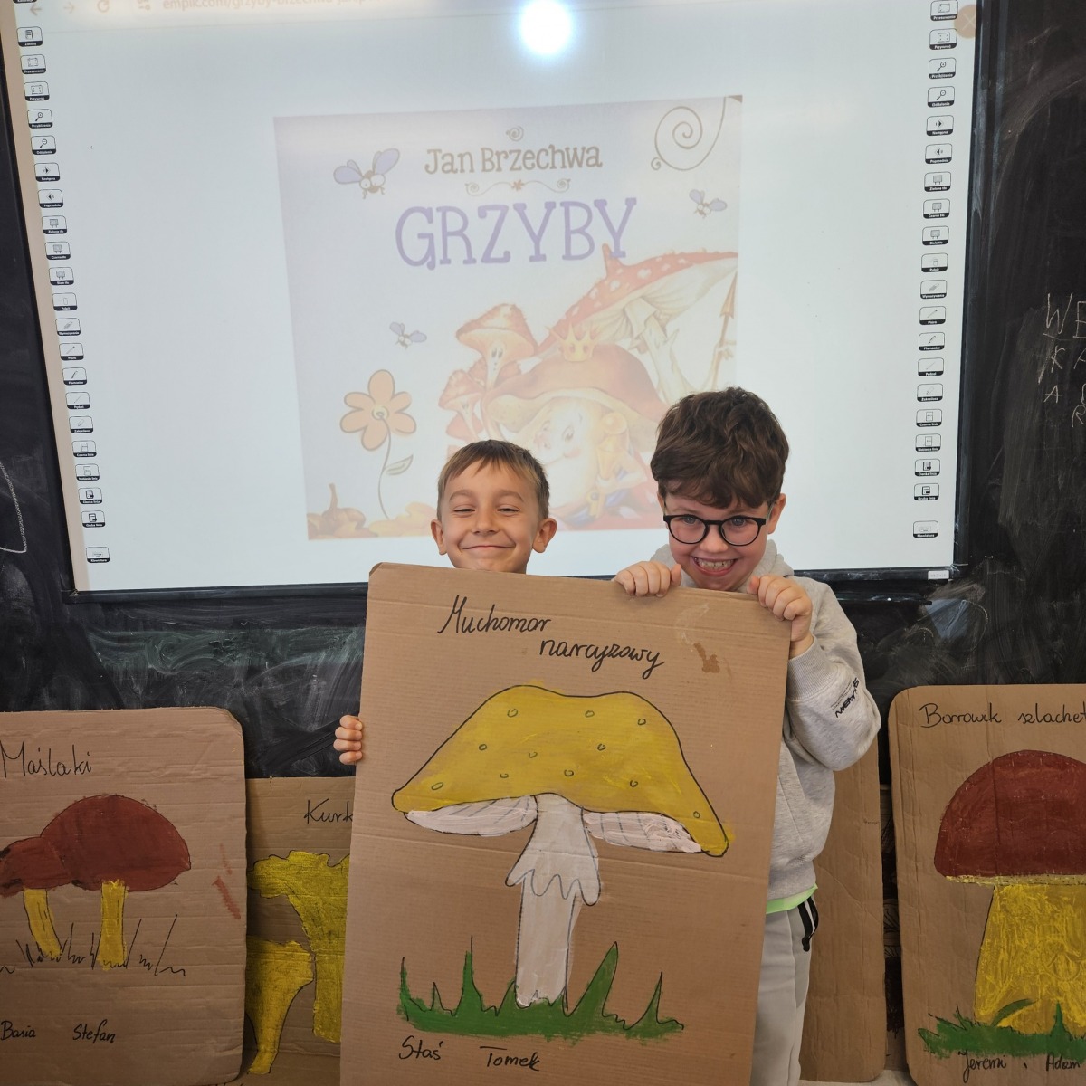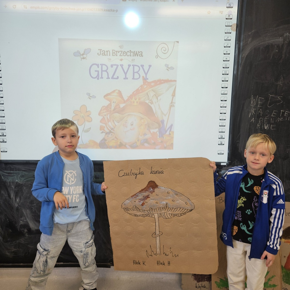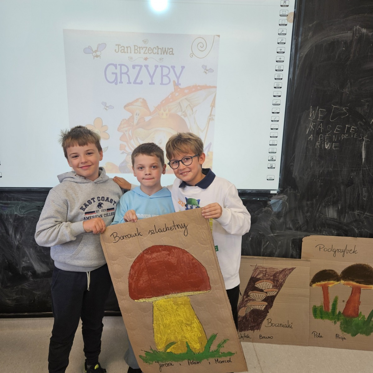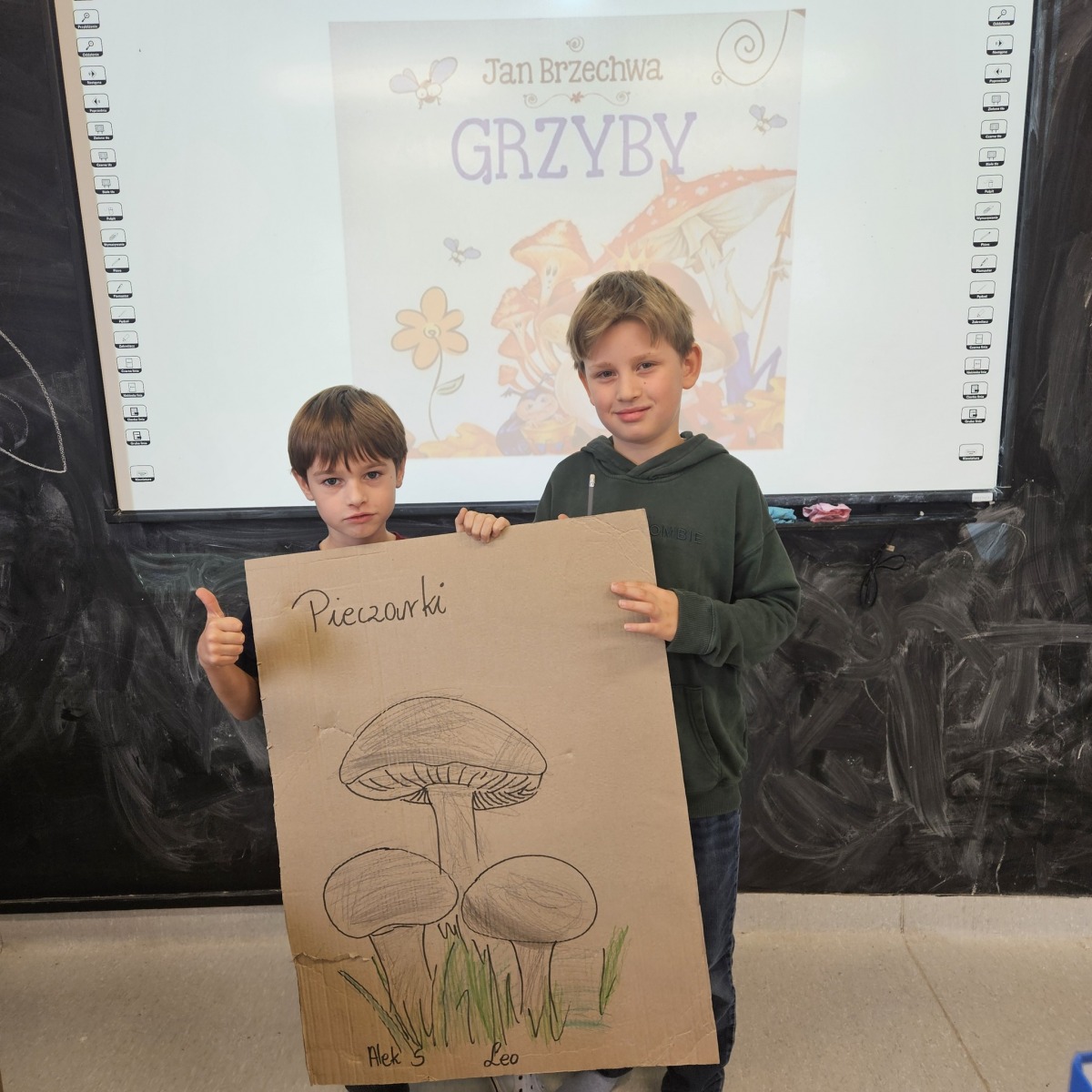 Podczas zajęć edukacyjnych uczniowie klasy 2a poznawali świat grzybów – zarówno tych jadalnych, jak i trujących. Dzieci z zaangażowaniem słuchały opowieści o lesie, grzybobraniu oraz właściwym zachowaniu podczas zbierania grzybów.