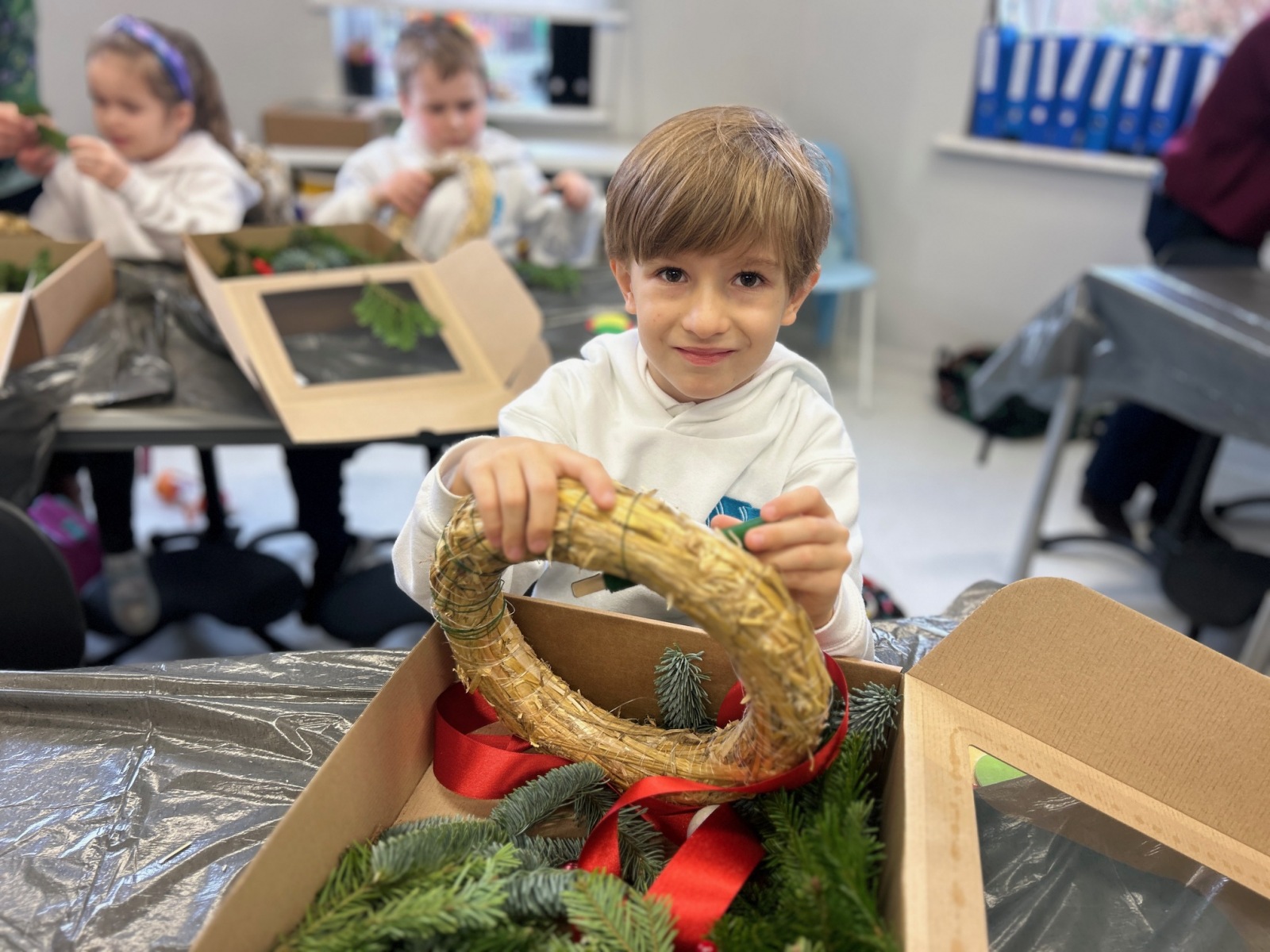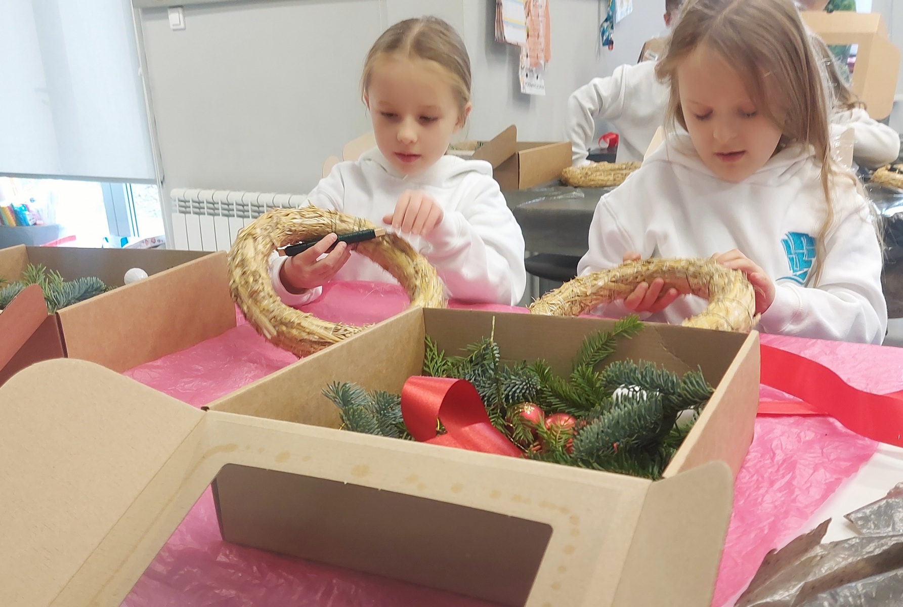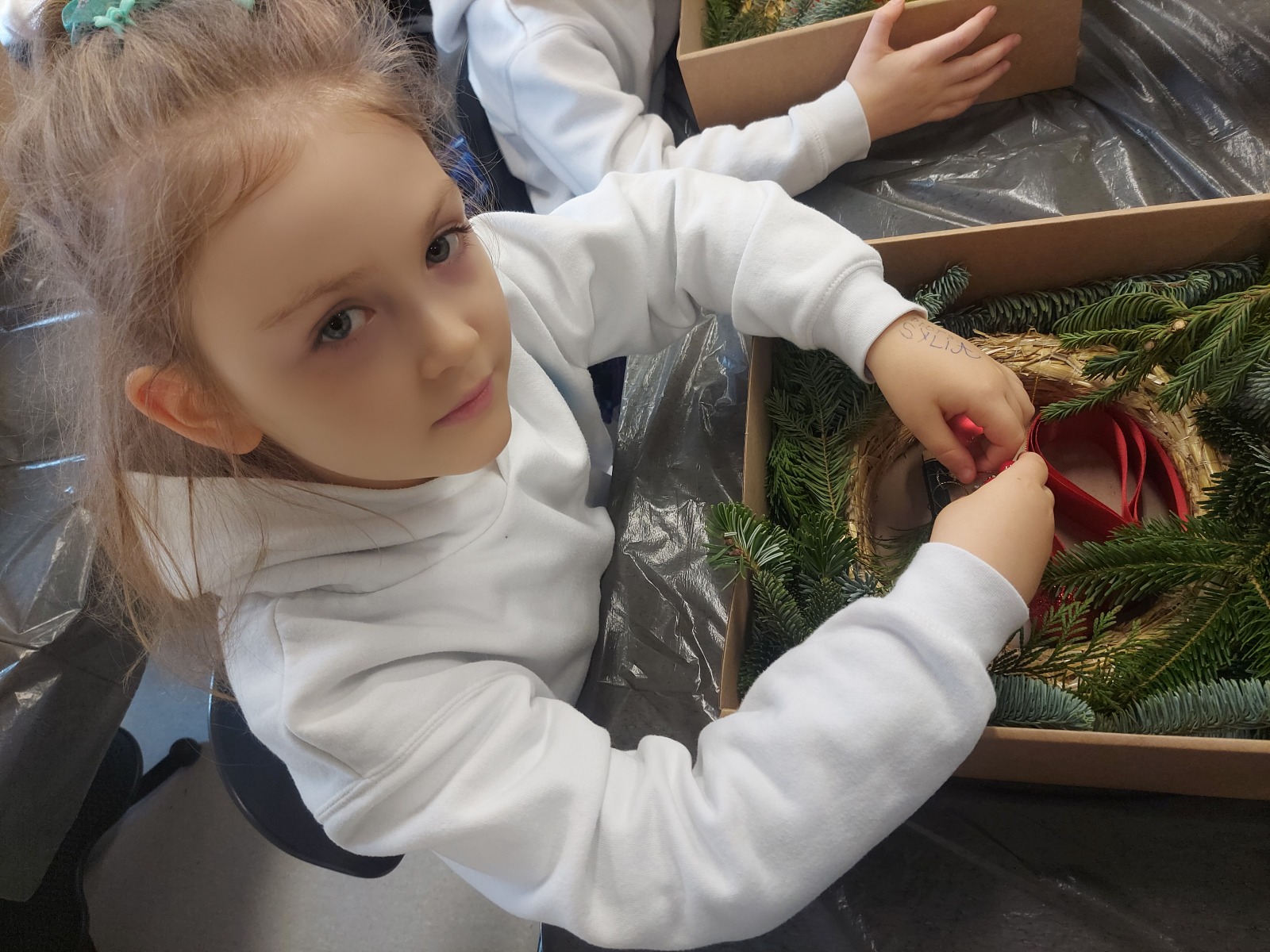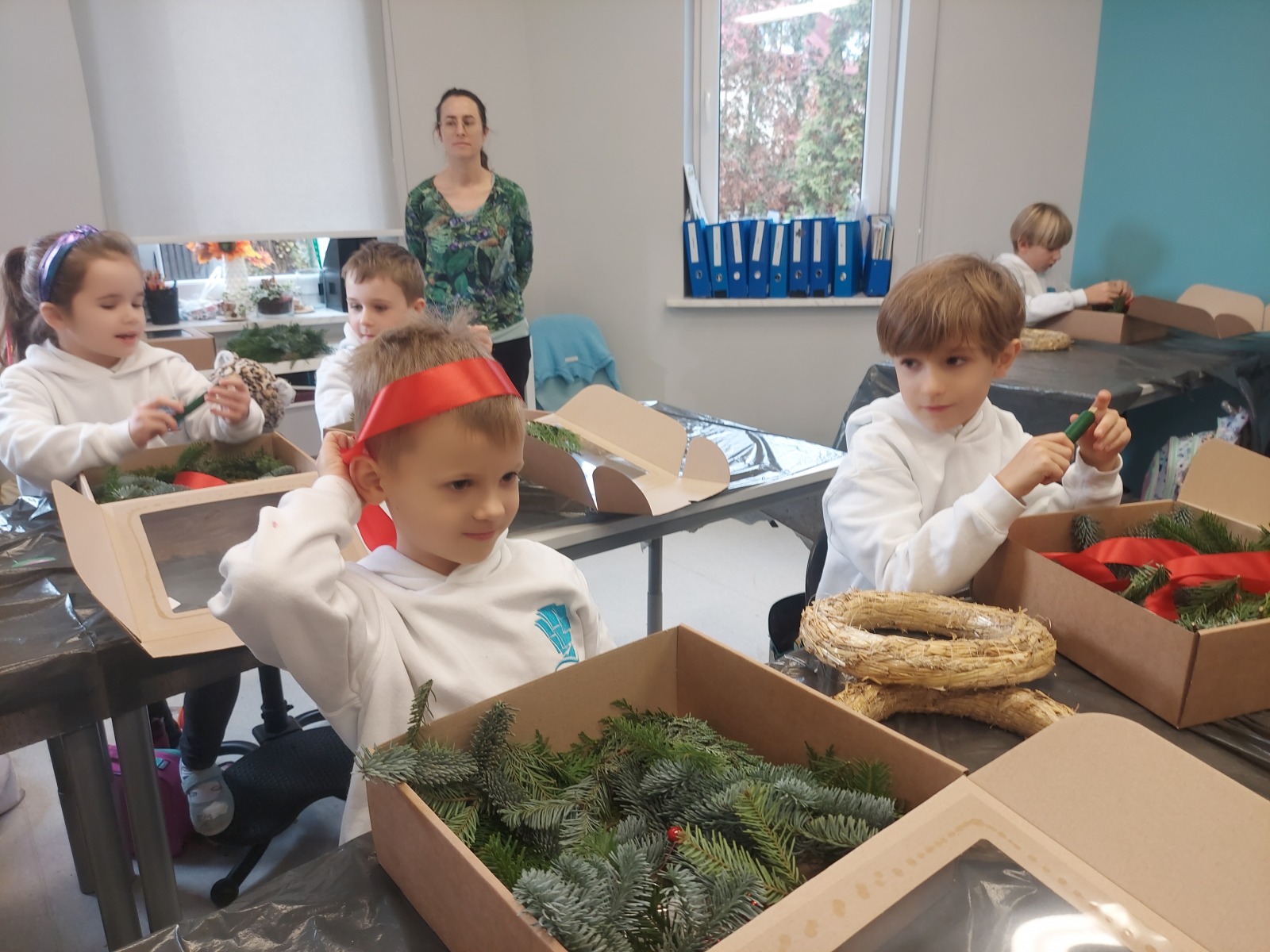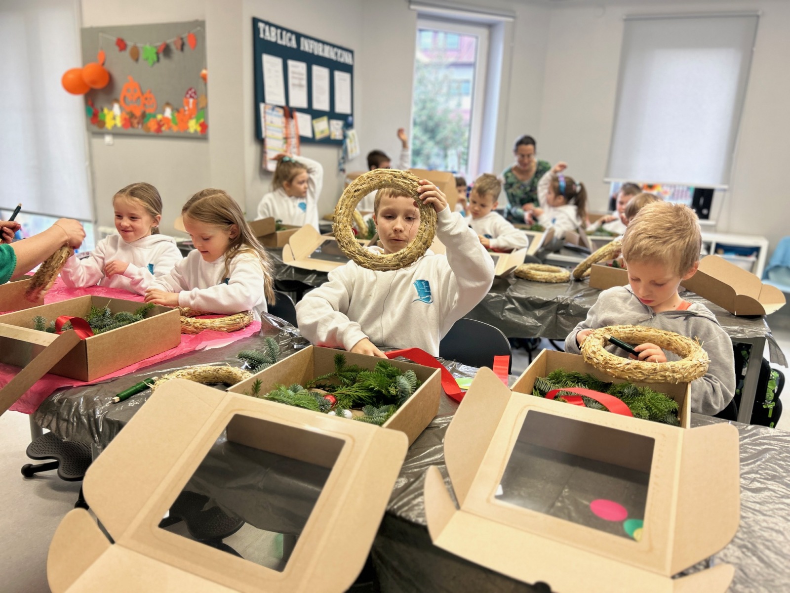 W związku ze zbliżającym się okresem świątecznym uczniowie klasy IA wykonali własnoręcznie przepiękne wieńce. Do pracy wykorzystali gotowe, okrągłe bazy oraz gałązki iglaste – m.in. świerku i sosny – które nadawały kompozycjom naturalny, zimowy charakter. Każdy wieniec został ozdobiony według pomysłu uczniów: kolorowymi bombkami, kokardkami, szyszkami i innymi dekoracjami. Powstały wyjątkowe, pełne uroku świąteczne ozdoby z prawdziwego ducha kreatywności – prawdziwe wieńcowe arcydzieła 🙂
