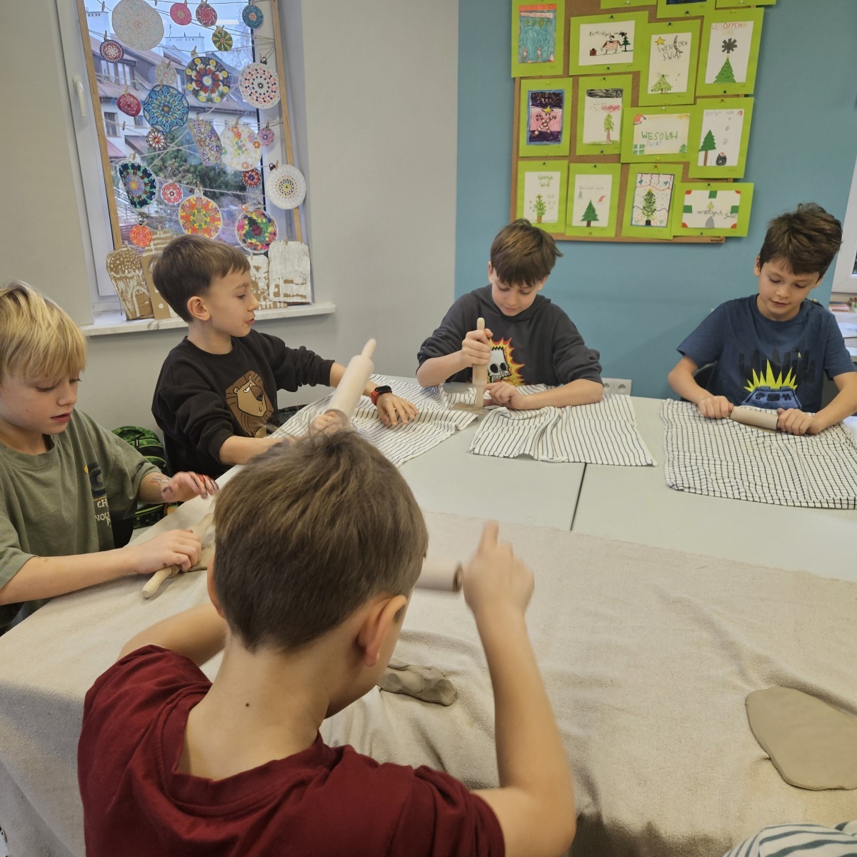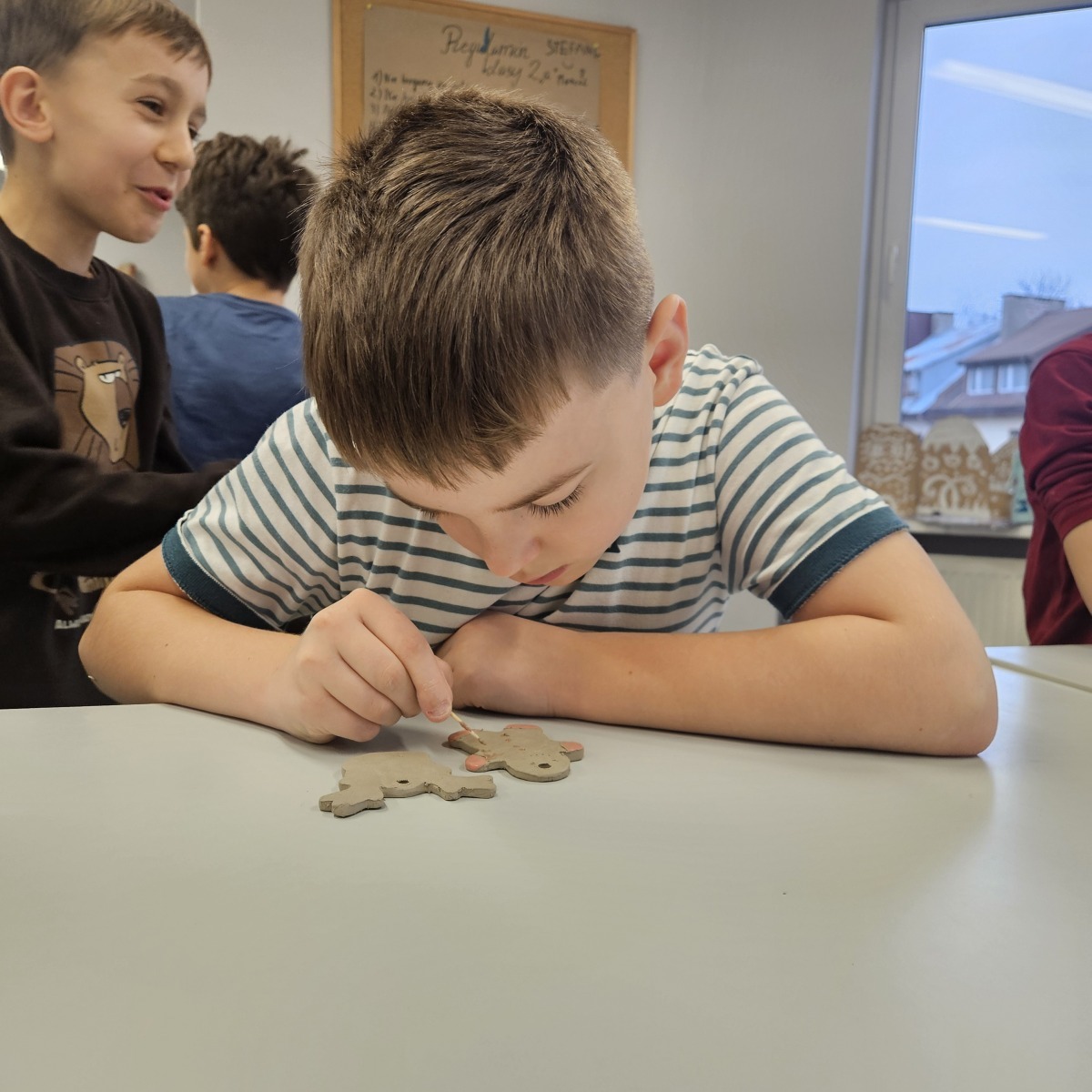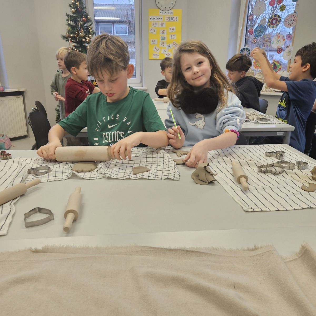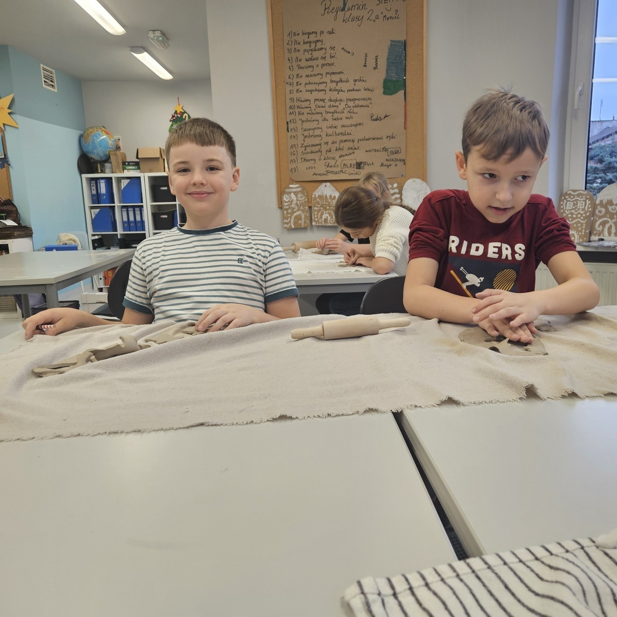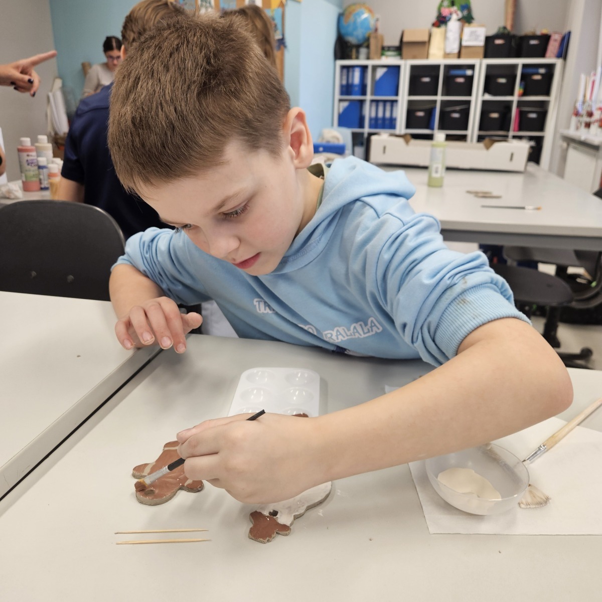 W klasie 2a odbyły się wyjątkowe warsztaty ceramiczne, podczas których uczniowie zanurzyli się w twórczą zabawę gliną w prawdziwie świątecznym nastroju. Dzieci samodzielnie lepiły ozdoby – choinki, aniołki, bałwanki i inne bożonarodzeniowe symbole – a następnie z wielkim zaangażowaniem malowały je barwnymi szkliwami. Warsztaty dostarczyły mnóstwa radości, rozwijały kreatywność oraz pozwoliły poczuć magię nadchodzących świąt. Każdy uczeń stworzył niepowtarzalną ozdobę, która z dumą może zawisnąć na choince lub stać się wyjątkowym prezentem dla bliskich.
