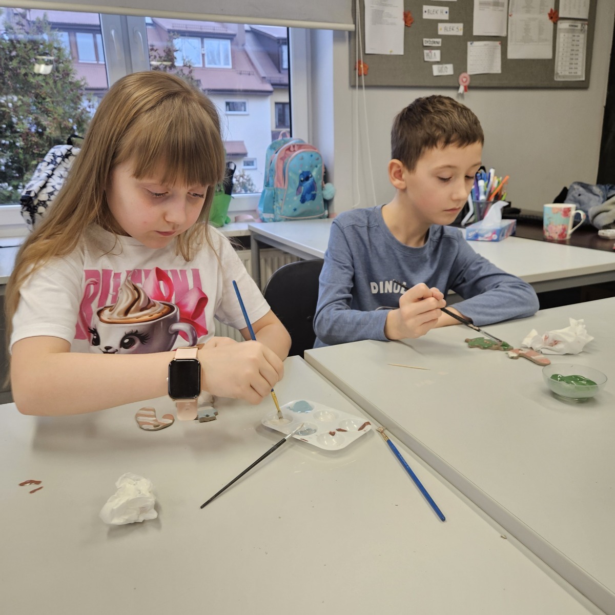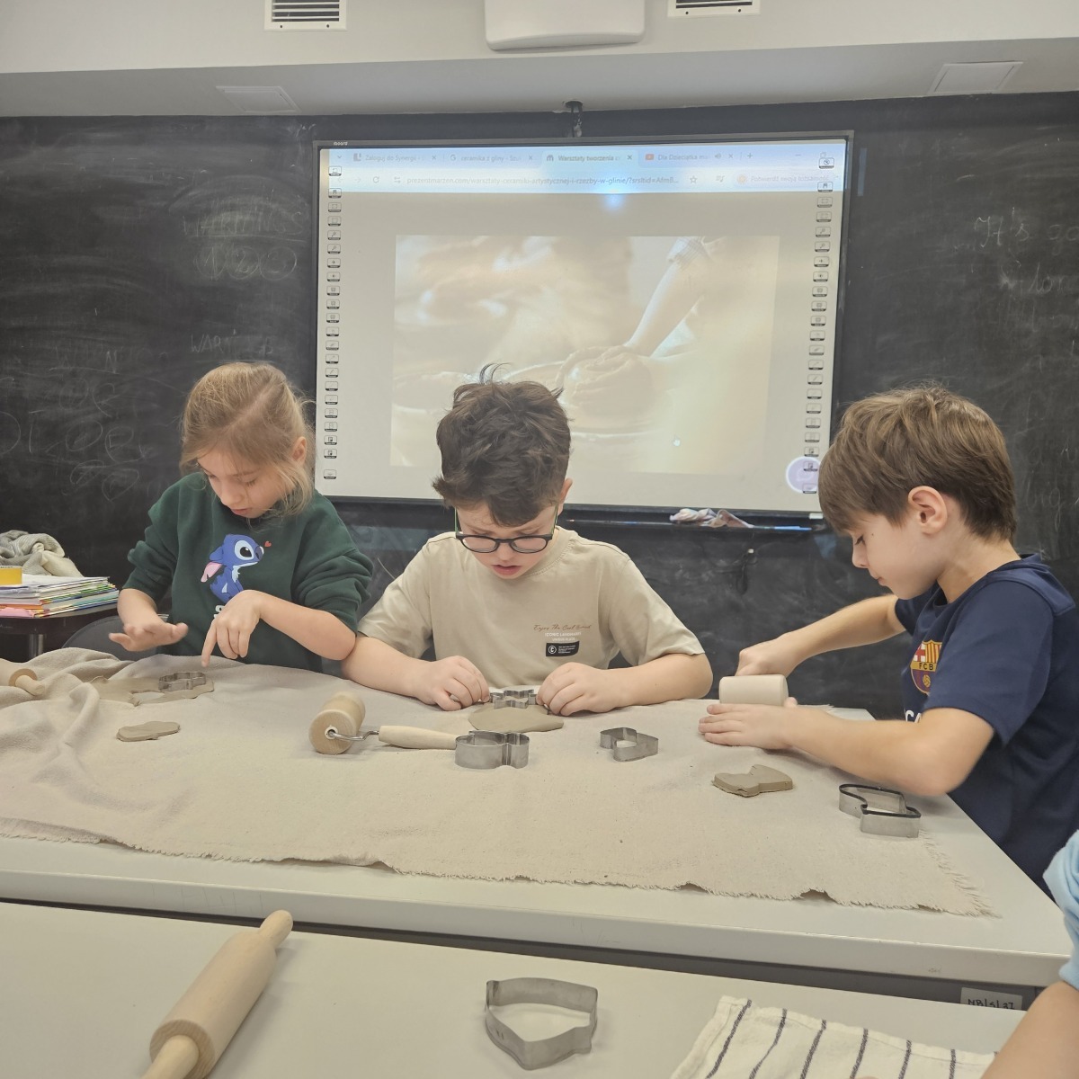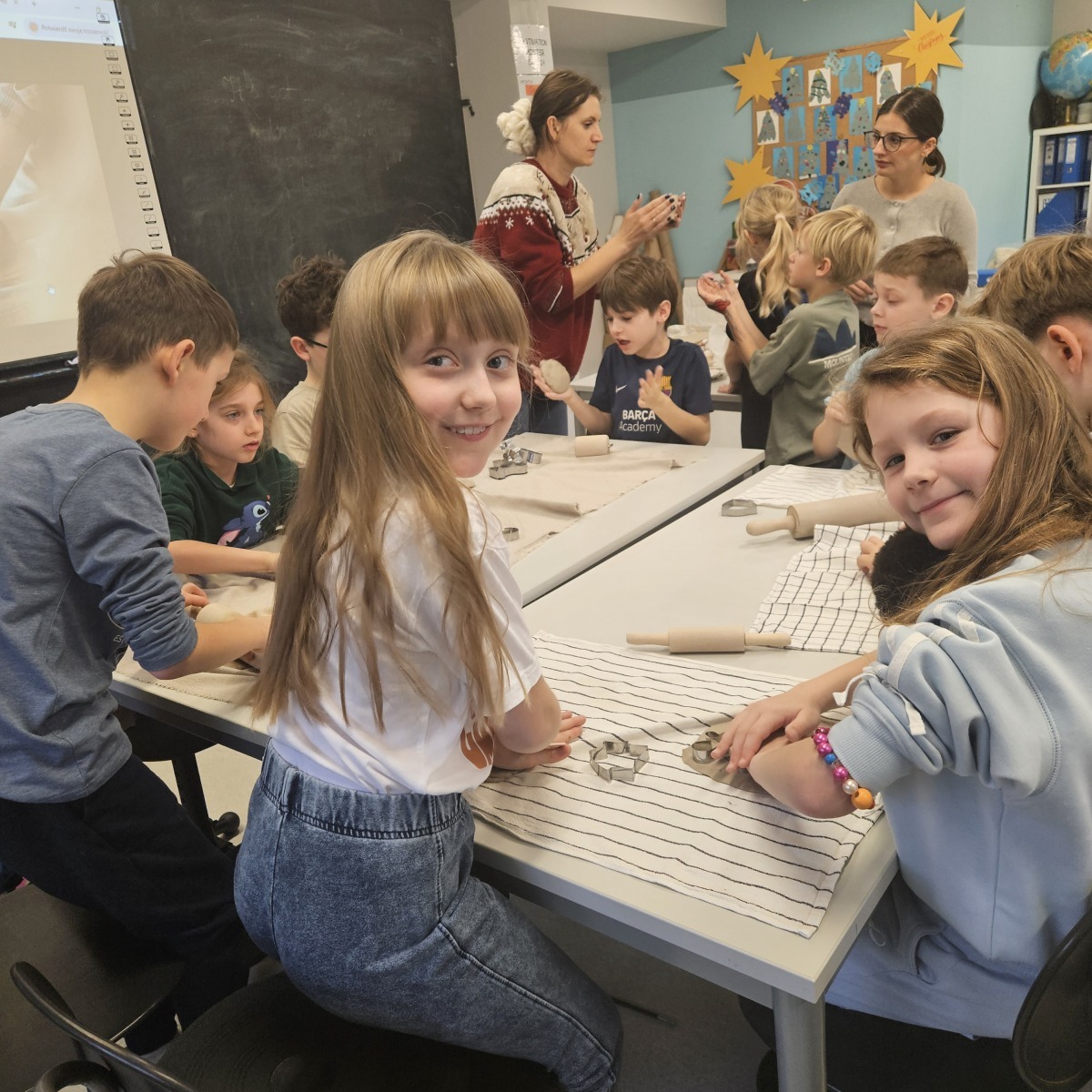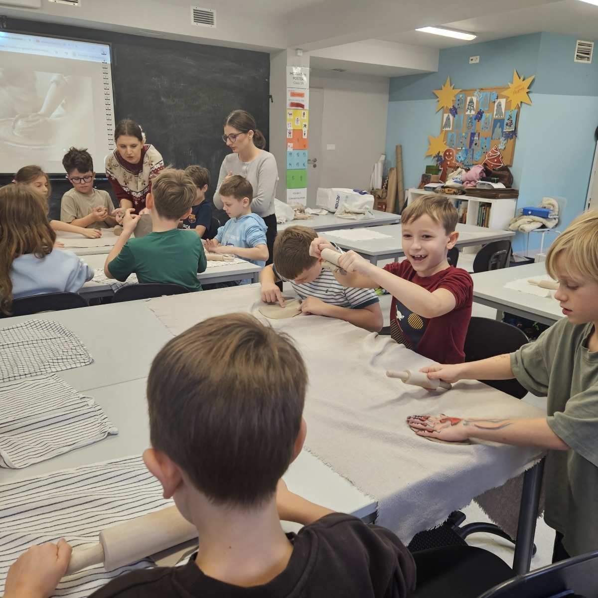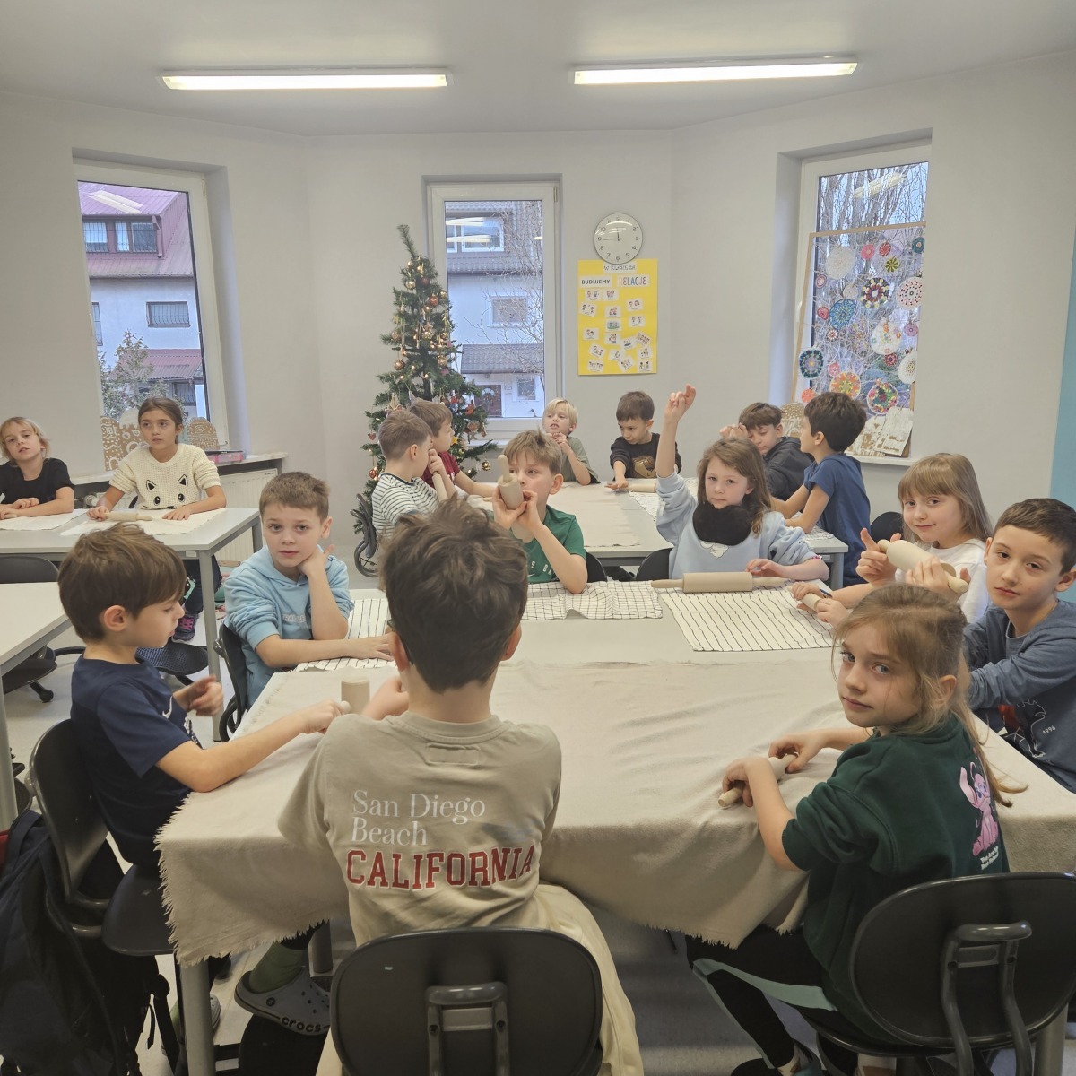 W klasie 2a odbyły się wyjątkowe warsztaty ceramiczne, podczas których uczniowie zanurzyli się w twórczą zabawę gliną w prawdziwie świątecznym nastroju. Dzieci samodzielnie lepiły ozdoby – choinki, aniołki, bałwanki i inne bożonarodzeniowe symbole – a następnie z wielkim zaangażowaniem malowały je barwnymi szkliwami. Warsztaty dostarczyły mnóstwa radości, rozwijały kreatywność oraz pozwoliły poczuć magię nadchodzących świąt. Każdy uczeń stworzył niepowtarzalną ozdobę, która z dumą może zawisnąć na choince lub stać się wyjątkowym prezentem dla bliskich.
