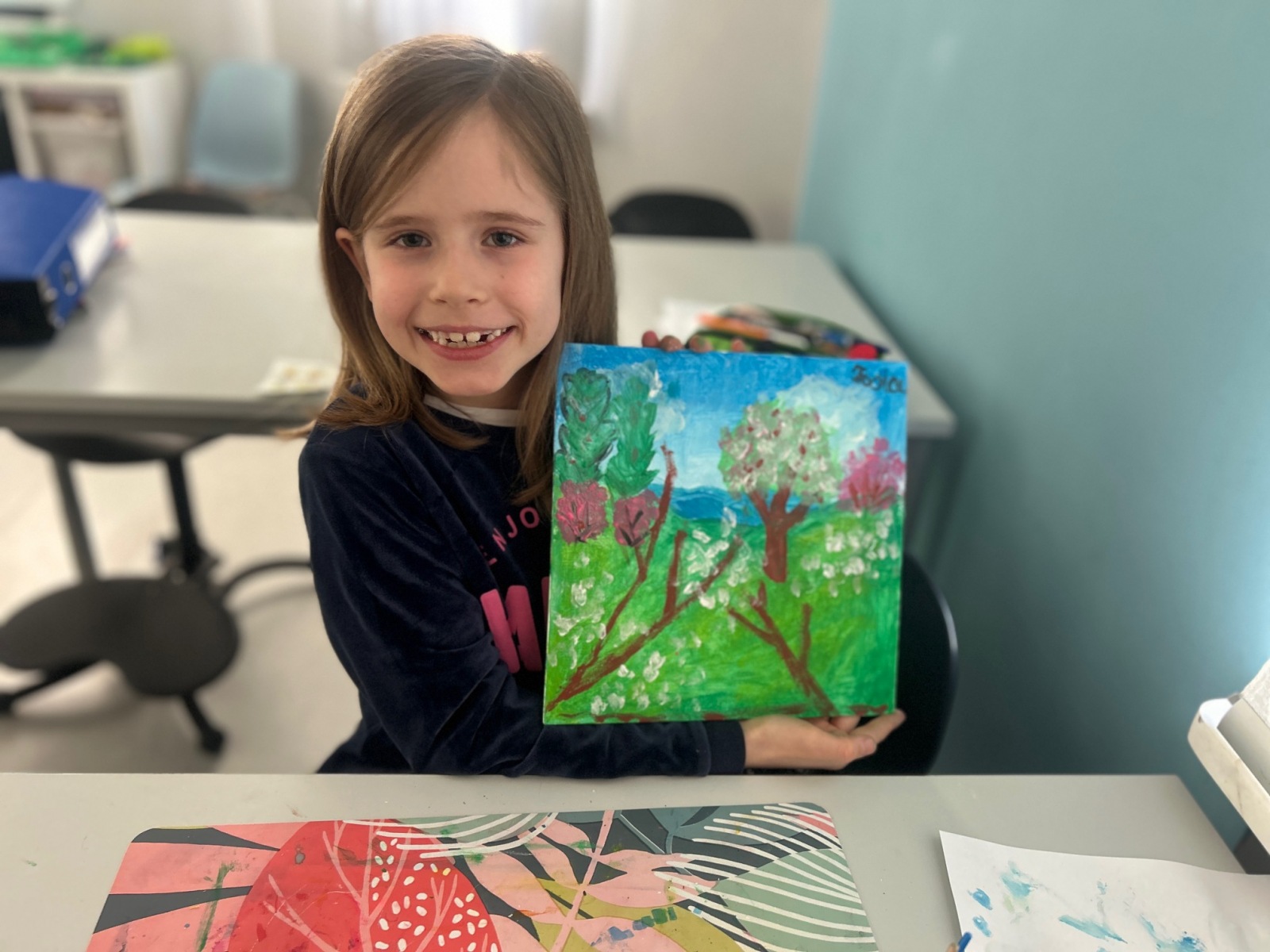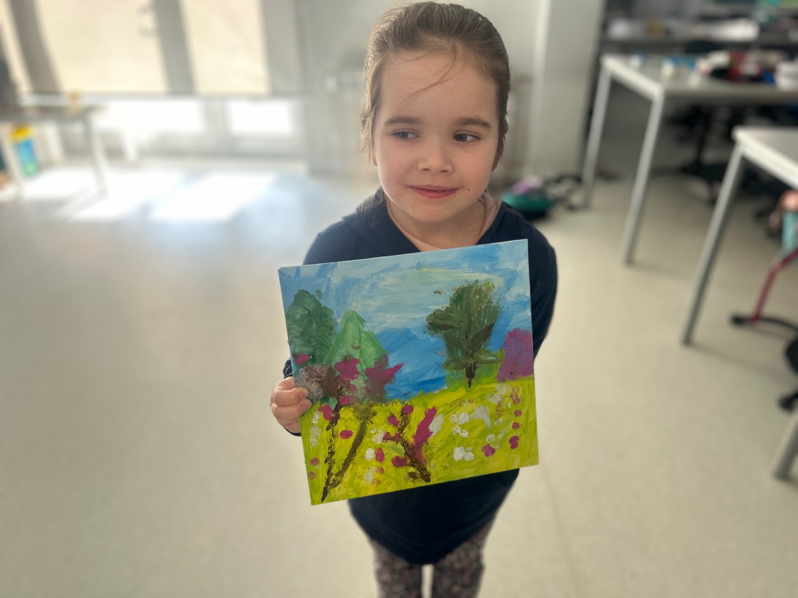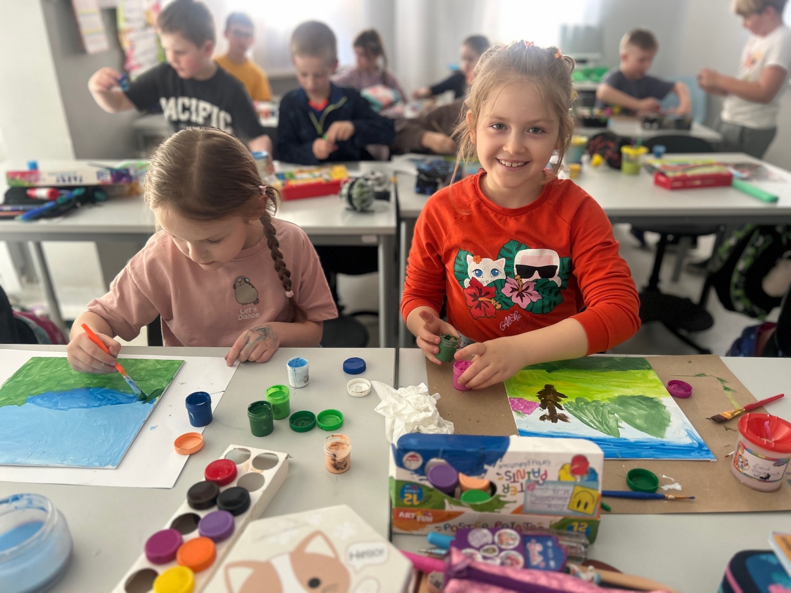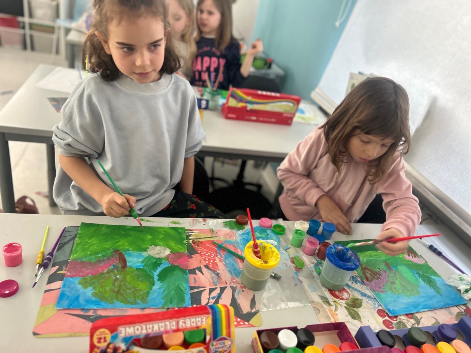 Podczas zajęć przyrodniczych uczniowie z zaangażowaniem odkrywali pierwsze zwiastuny wiosny. Rozpoznawali budzące się do życia rośliny, obserwowali zmiany w przyrodzie i dzielili się swoimi spostrzeżeniami. Zainspirowani obrazem „Wiosna w lesie” wykonali własne wiosenne obrazy.
