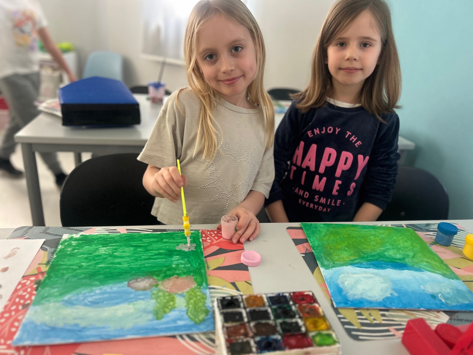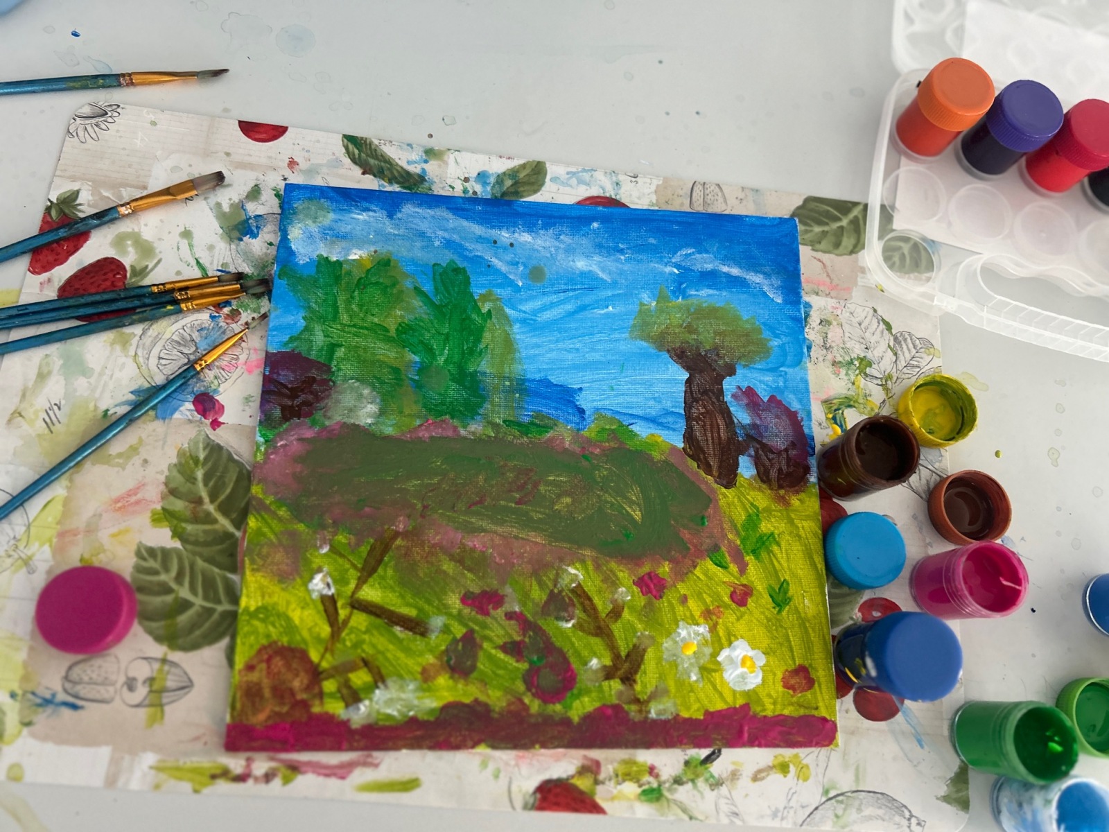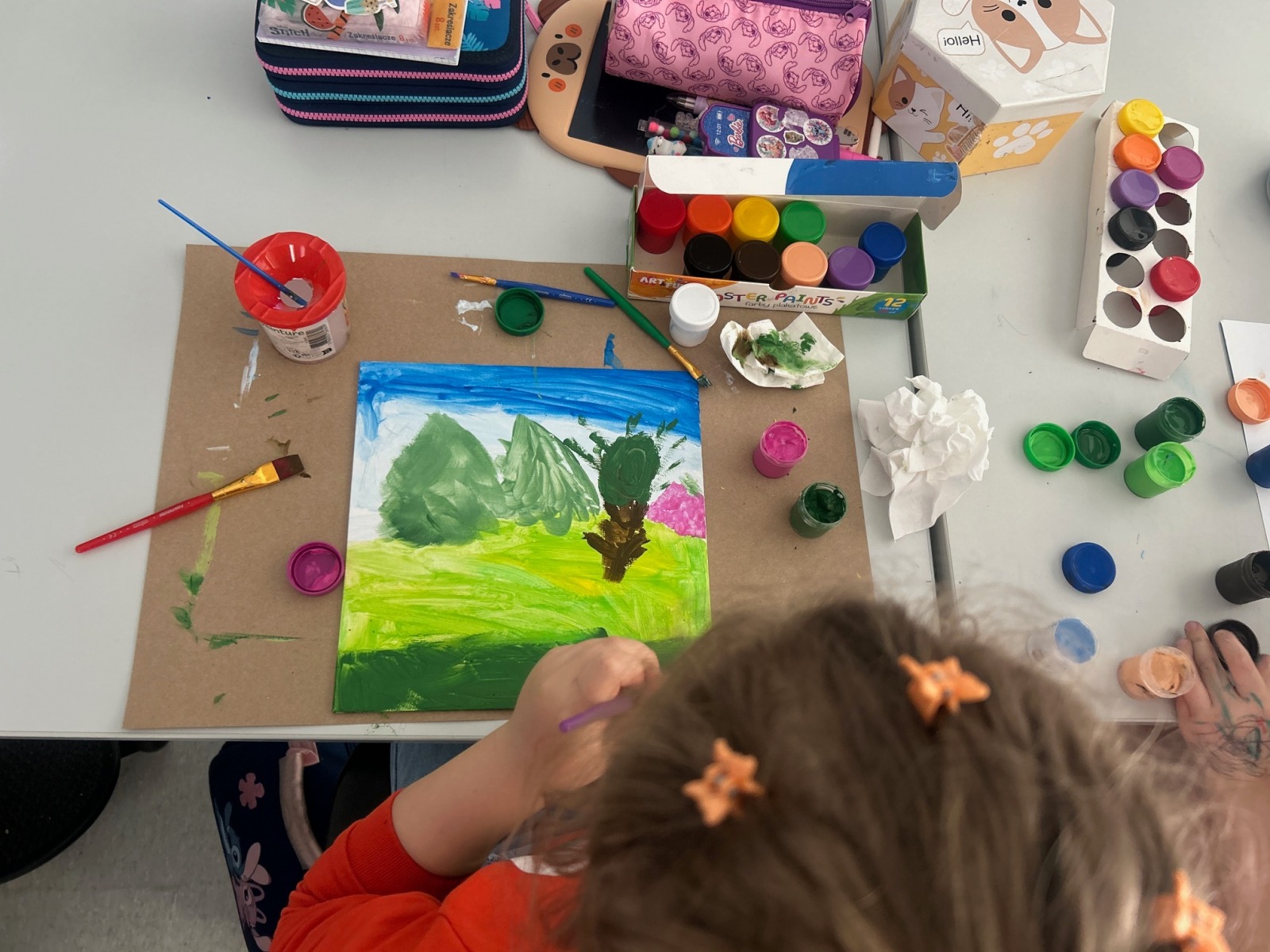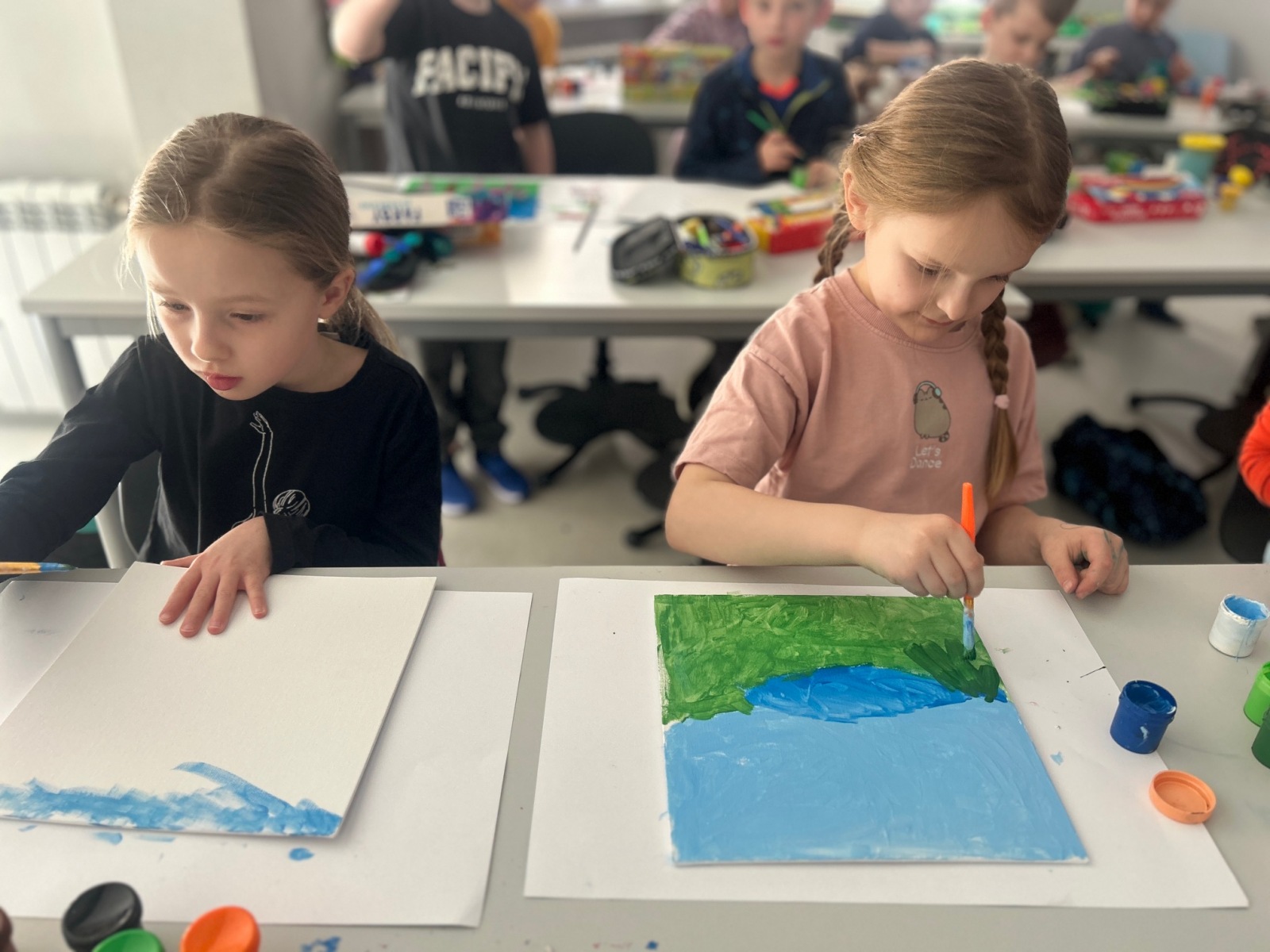 Podczas zajęć przyrodniczych uczniowie z zaangażowaniem odkrywali pierwsze zwiastuny wiosny. Rozpoznawali budzące się do życia rośliny, obserwowali zmiany w przyrodzie i dzielili się swoimi spostrzeżeniami. Zainspirowani obrazem „Wiosna w lesie” wykonali własne wiosenne obrazy.