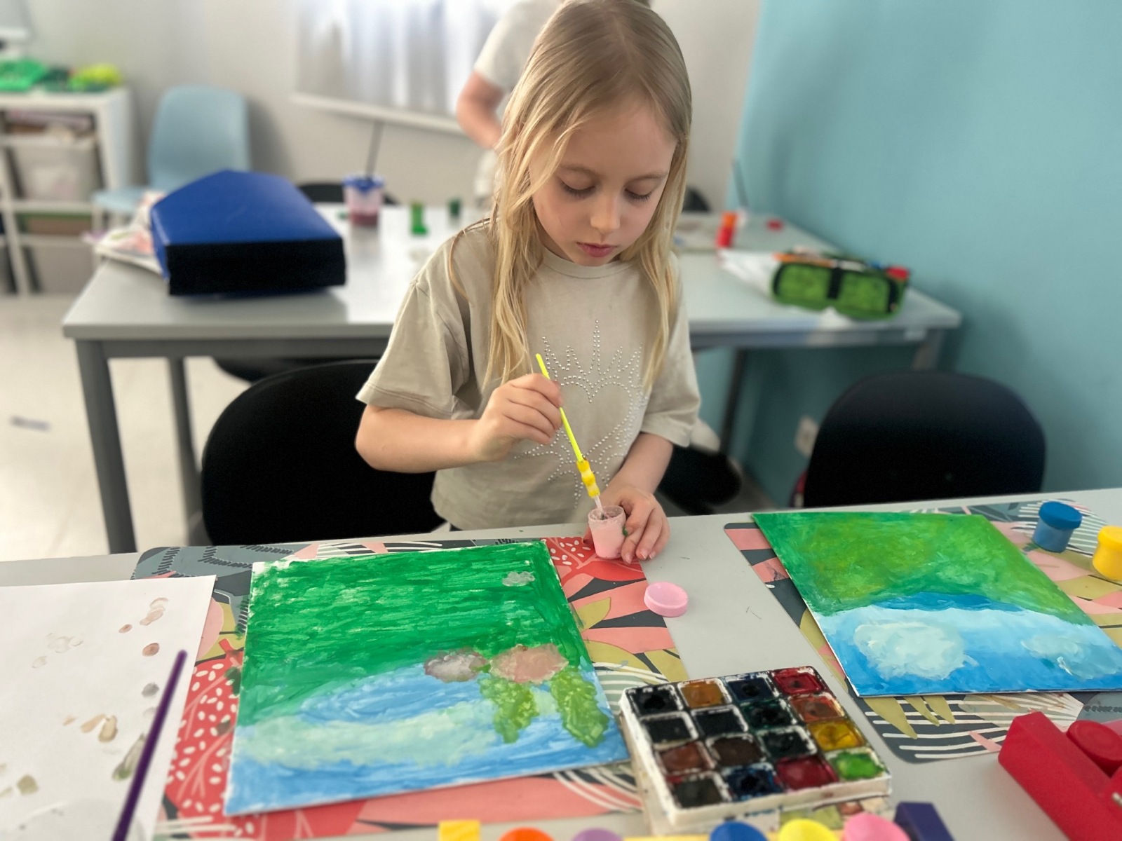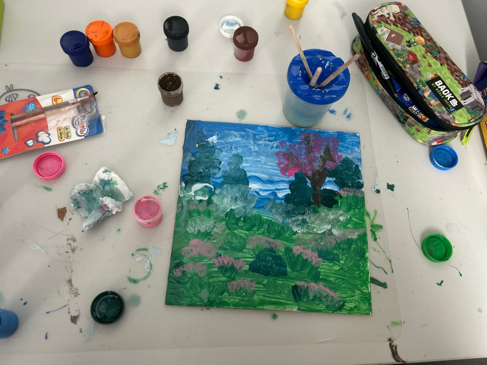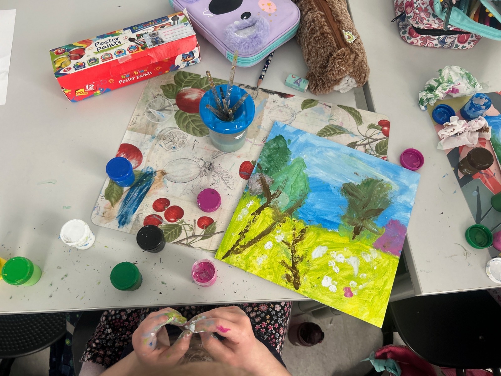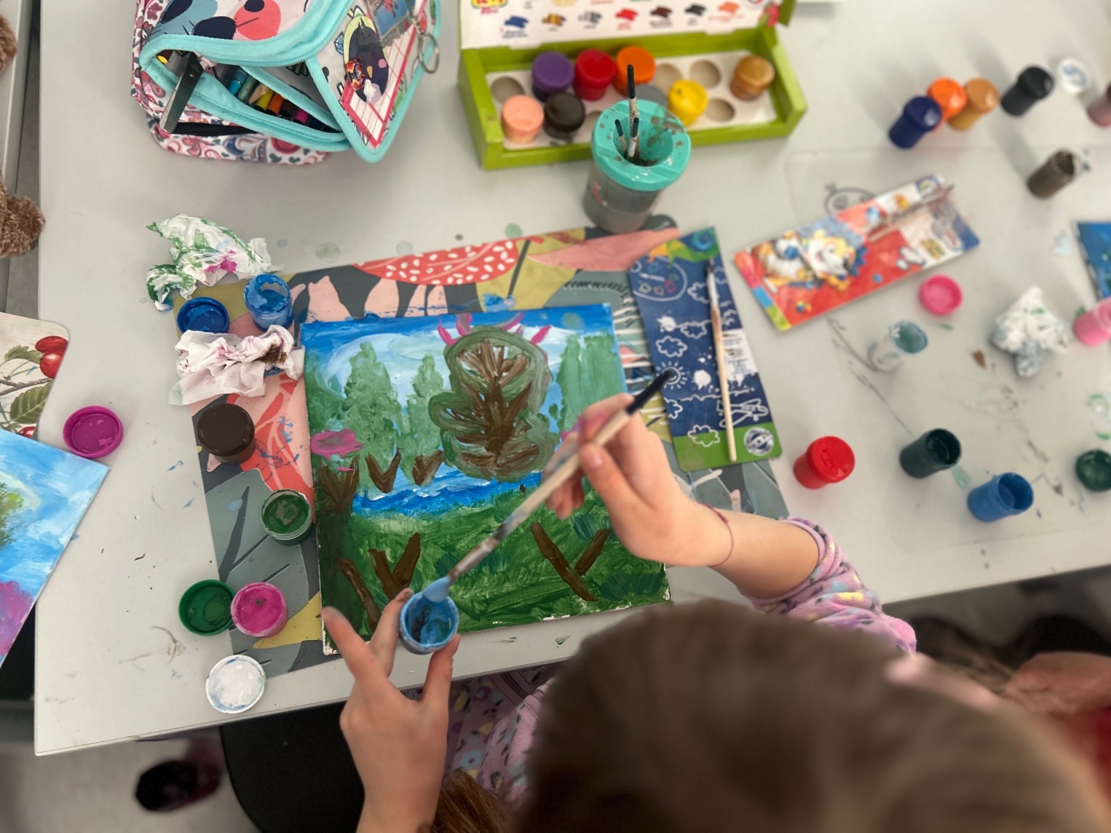 Podczas zajęć przyrodniczych uczniowie z zaangażowaniem odkrywali pierwsze zwiastuny wiosny. Rozpoznawali budzące się do życia rośliny, obserwowali zmiany w przyrodzie i dzielili się swoimi spostrzeżeniami. Zainspirowani obrazem „Wiosna w lesie” wykonali własne wiosenne obrazy.
