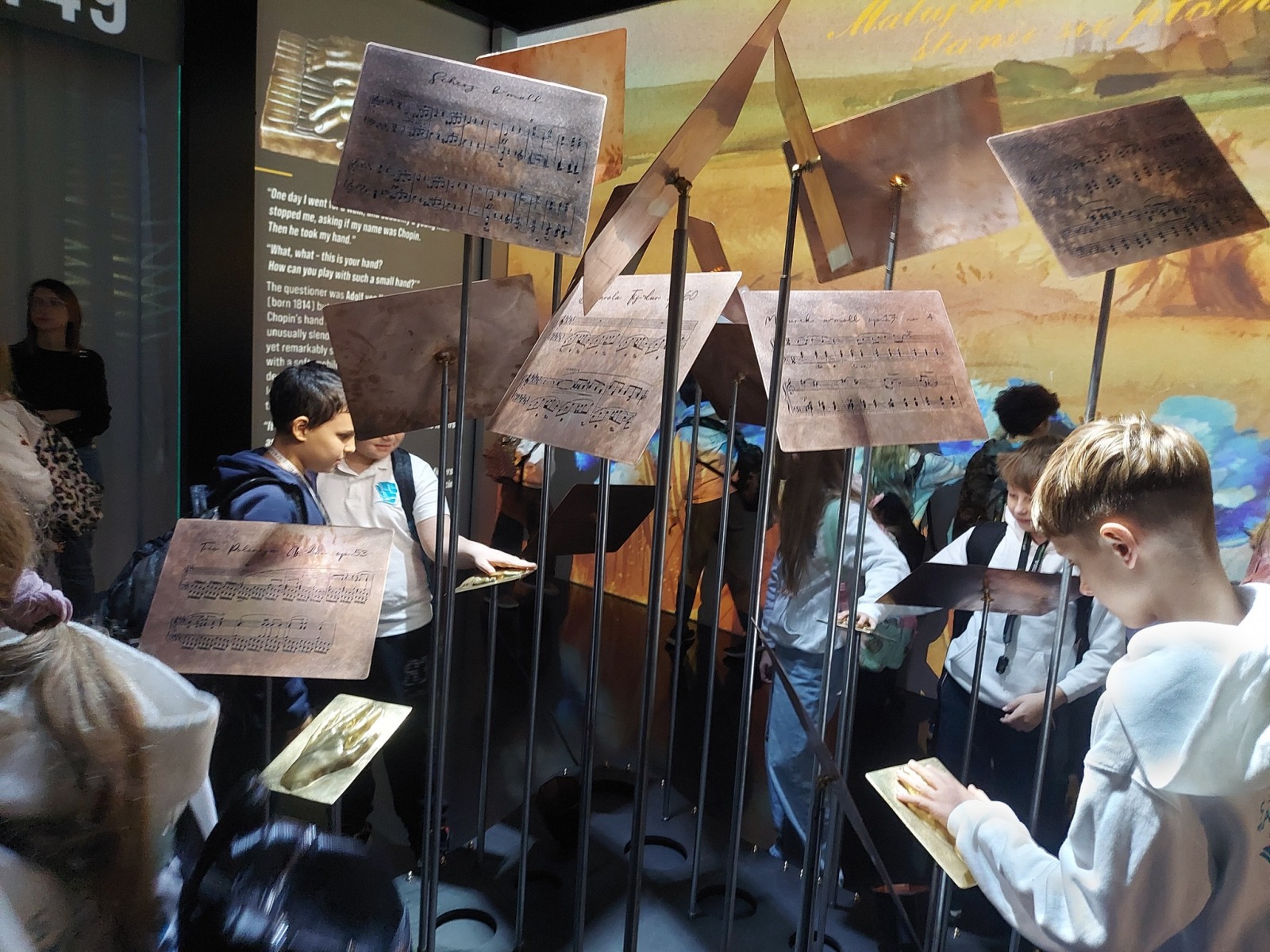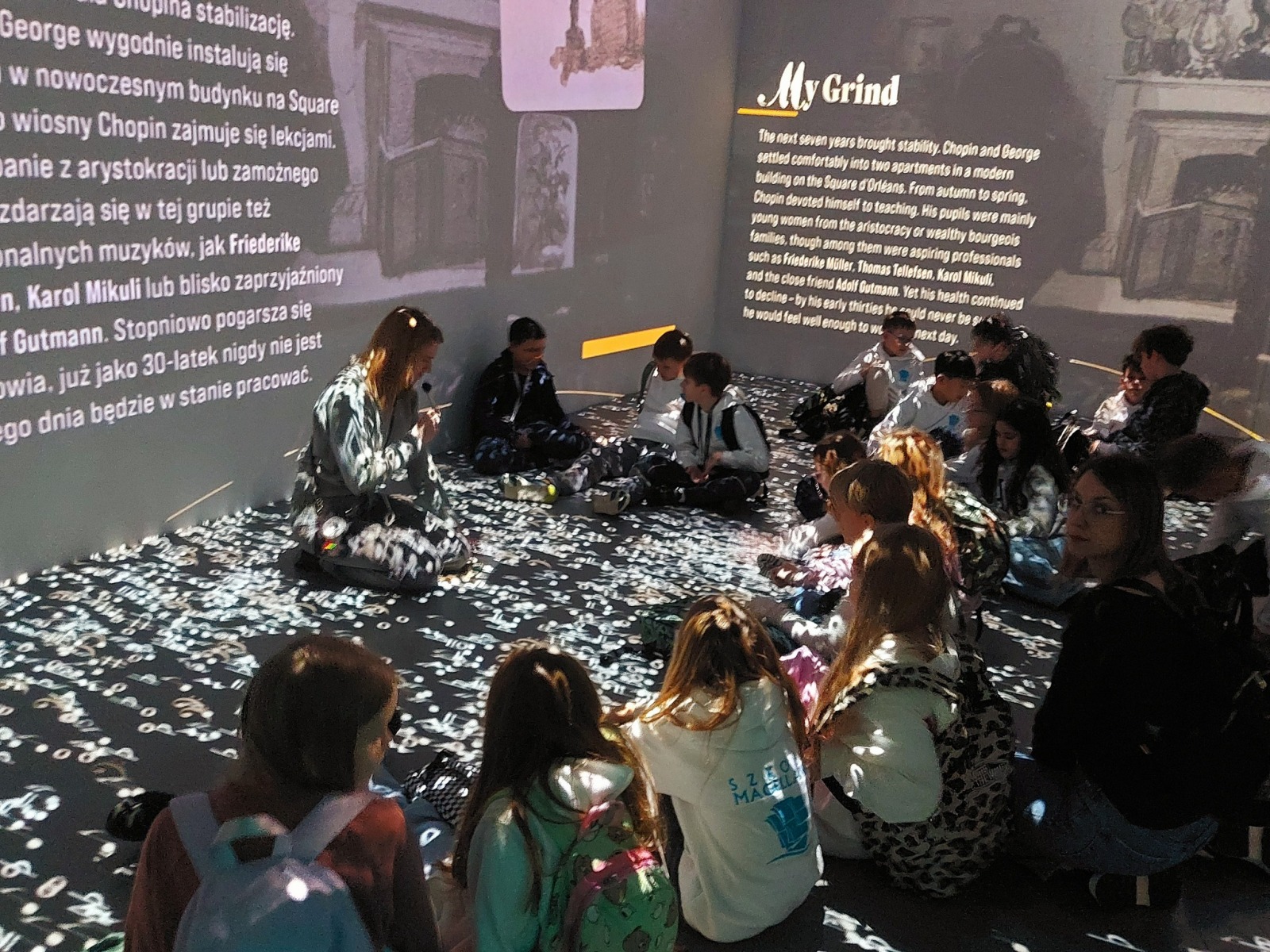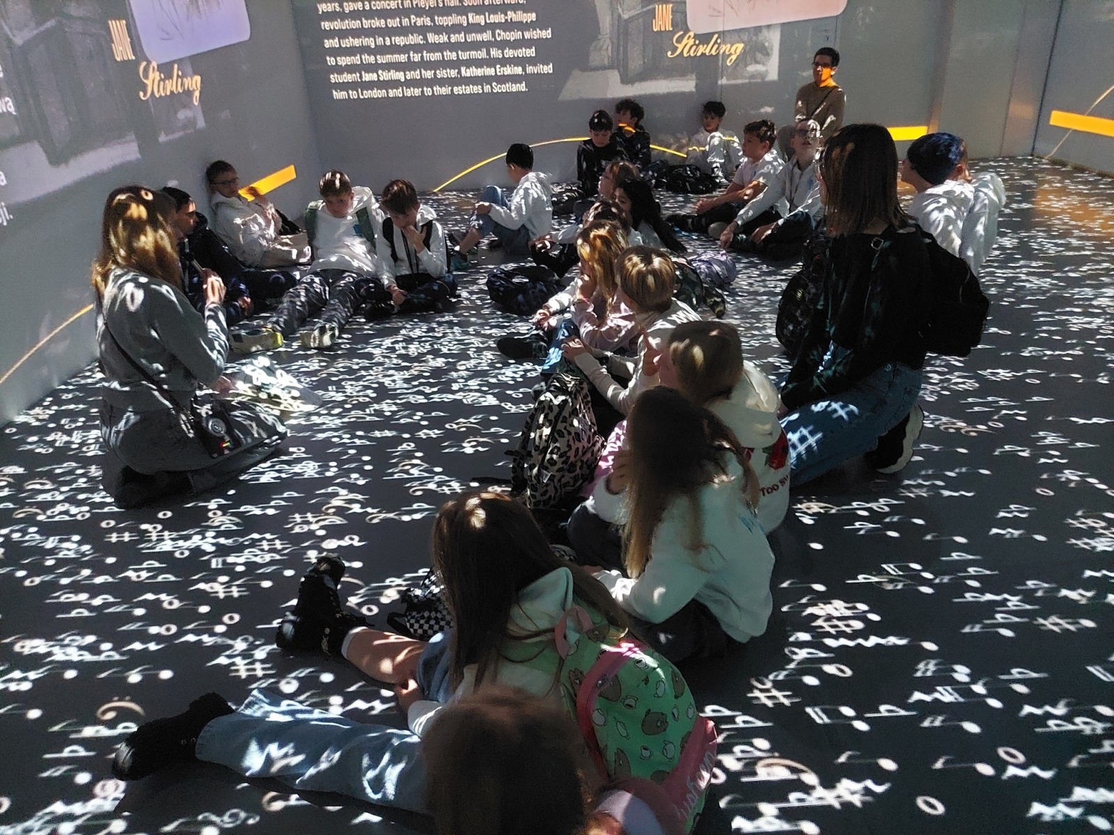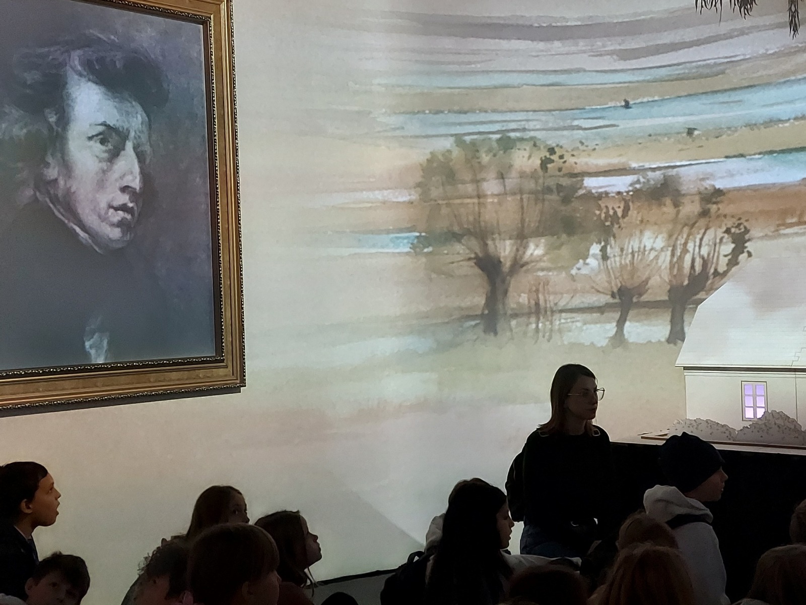 Klasa 4J i 4P wzięły udział w autorskich lekcjach edukacyjnych przygotowanych w ramach immersyjnej wystawy ,,Romantyczny Chopin. Uczniowie z chęcią słuchali wielozmysłowej narracji o życiu, twórczości oraz kontekście historycznym Fryderyka Chopina. Piękna wystawa interaktywna pozwoliła nam również zwiedzić Warszawę Chopina w formacie VR, dotknąć odlewu ręki Chopina oraz posłuchać światowej klasy muzyki gatunku romantycznego i fortepianowego (takie jak nokturny, etiudy, mazurki, polonezy, walce i ballady).