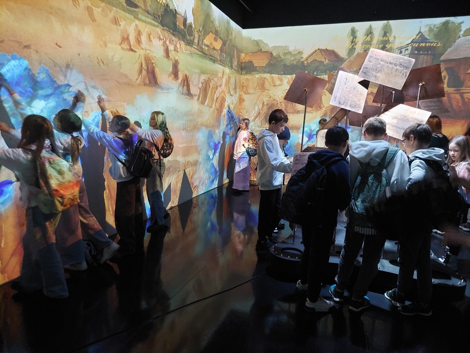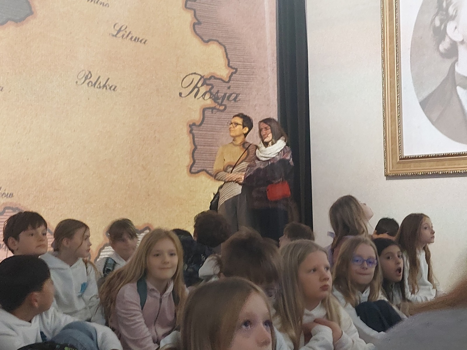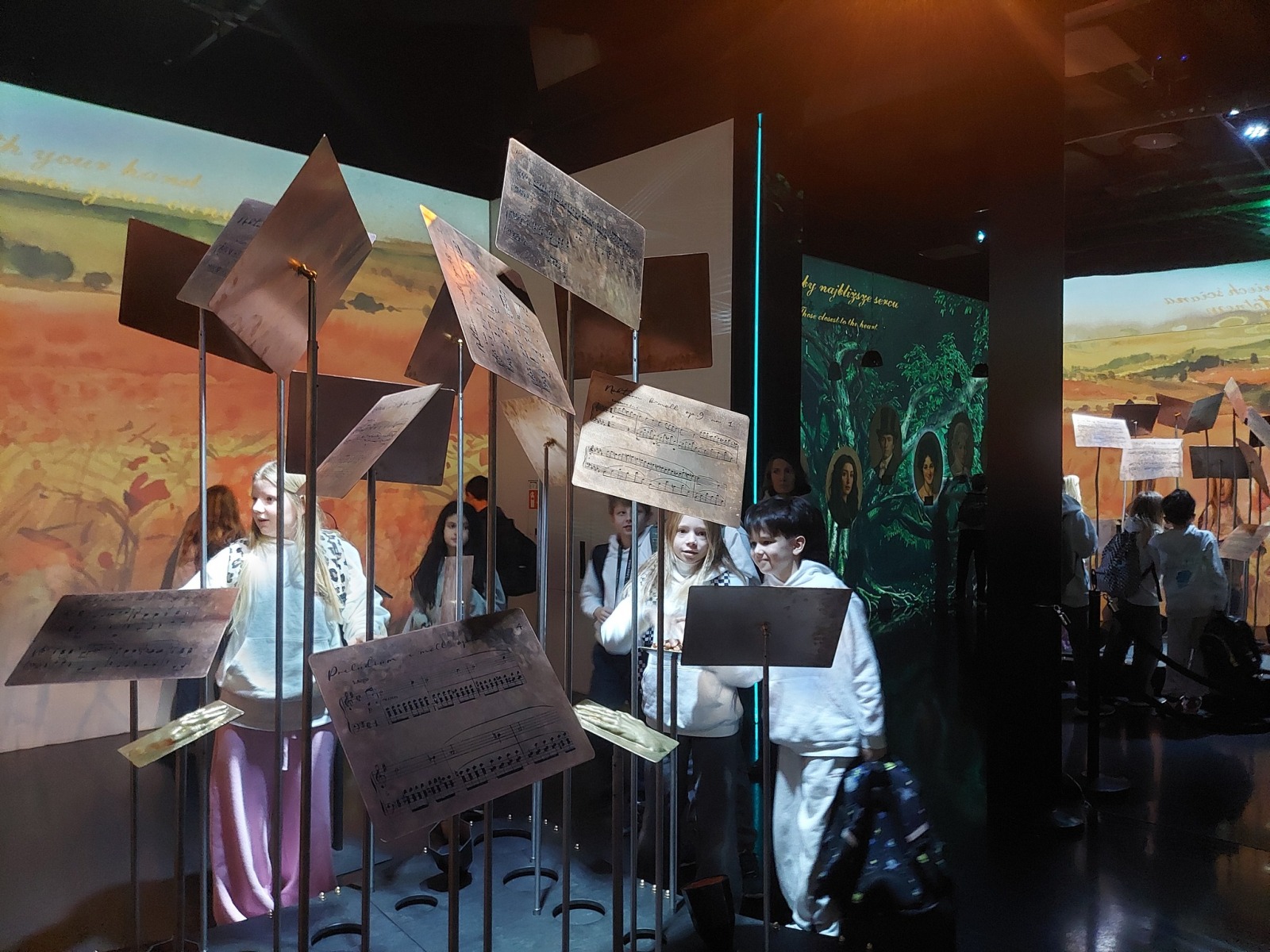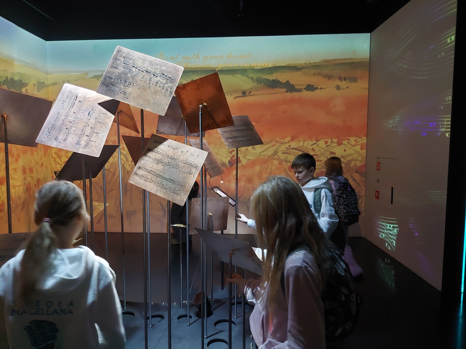Klasa 4J i 4P wzięły udział w autorskich lekcjach edukacyjnych przygotowanych w ramach immersyjnej wystawy ,,Romantyczny Chopin. Uczniowie z chęcią słuchali wielozmysłowej narracji o życiu, twórczości oraz kontekście historycznym Fryderyka Chopina. Piękna wystawa interaktywna pozwoliła nam również zwiedzić Warszawę Chopina w formacie VR, dotknąć odlewu ręki Chopina oraz posłuchać światowej klasy muzyki gatunku romantycznego i fortepianowego (takie jak nokturny, etiudy, mazurki, polonezy, walce i ballady).