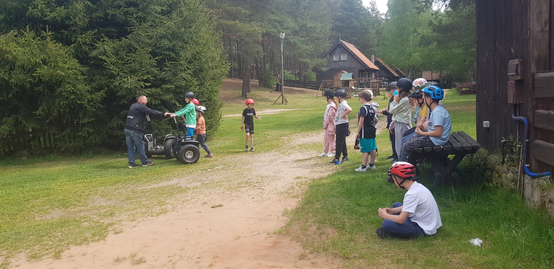 Uczniowie klas III i IV w ramach zielonej szkoły wybrali się do „Bajkowego zakątka”. Celem wycieczki było poznanie kultury regionu warmińsko-mazurskiego oraz integracja społeczności szkolnej. Podczas pobytu uczniowie mieli okazję nie tylko na gimnastykę o poranku, ale także pod okiem instruktora przejechać się na quadzie i segwayu, a oto fotorelacja z wycieczki.